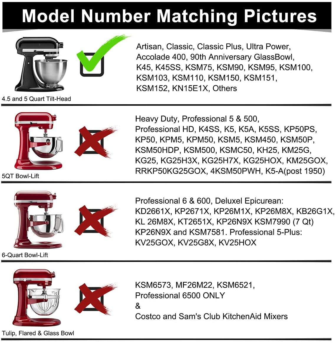 Compatible Model: The flat edge beater works with 4.5-5 Quart tilt-head stand mixer bowls. Fits for models K45, K45SS, KSM1, KSM75, KSM8, KSM90, KSM9, KSM95, KSM100, KSM103, KSM105GBCER, KSM110, KSM120, KSM15, KSM150, KSM150PS, KSM155GB, KSM152, KN15E1X, KSM150PSER, KSM16, KSM75SL Classic Plus, KSM45 and so on. Note: NOT FIT FOR 5 Quart and 6 Quart Bowl-Lift Stand Mixers. If you are not sure what sizes of your mixer, please leave us a message.