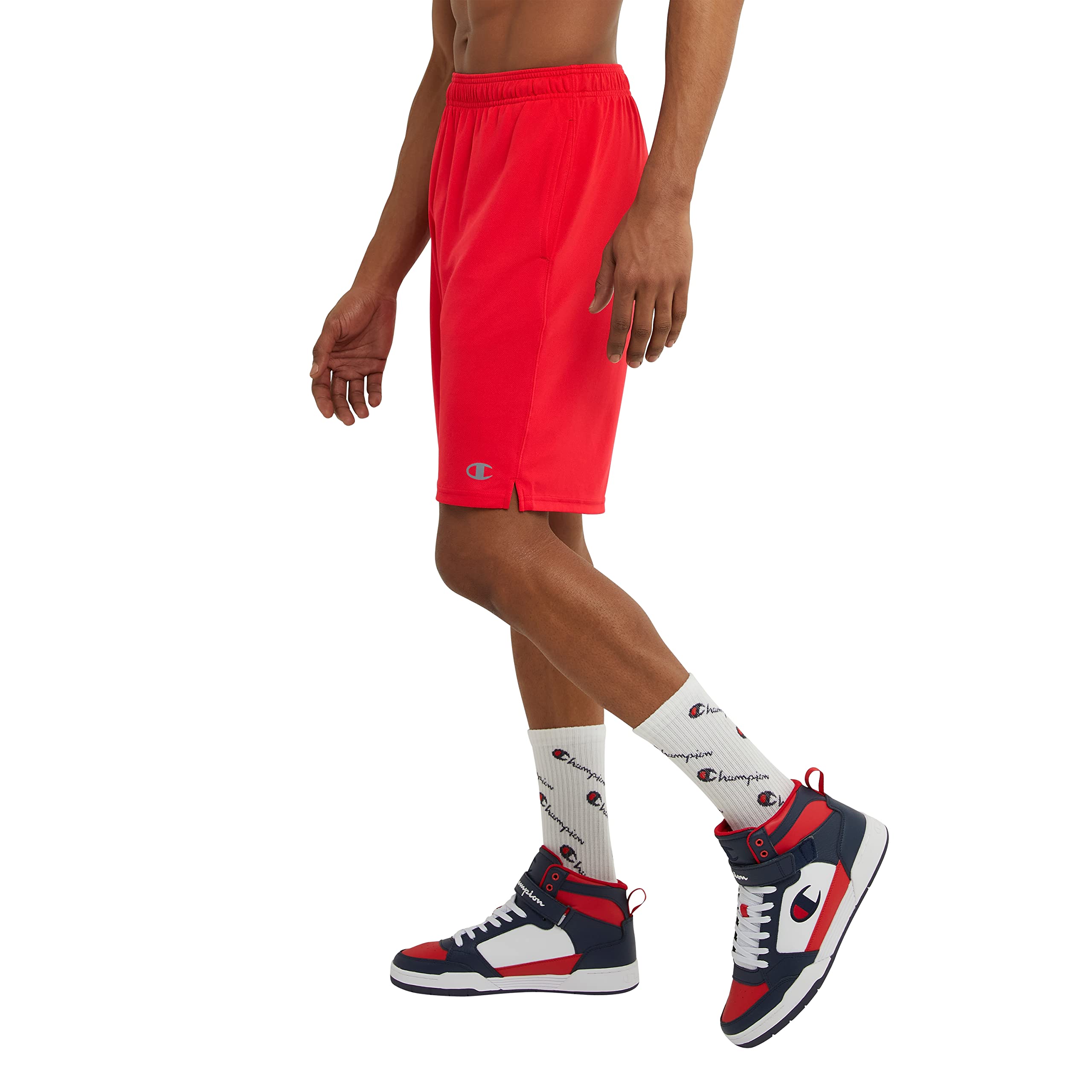 Description THE LENGTH YOU WANT For a pickup game, a workout at the gym, or a morning run, these sport shorts for men are a perfect fit. They're made with moisture wicking technology that wicks sweat away from skin and dries in a flash to keep you cool and comfortable. Designed for maximum mobility, these men's shorts have an elasticized waistband with an inner drawcord that you can adjust to your best fit. Plus, side vents make for easy moves on and off the court. These performance training shorts are thoughtfully designed with convenient side-seam pockets to hold your phone, keys, and other essentials. You'll appreciate the knee-length 10" inseam adding coverage and comfort. The finishing touch on this effortless design is the iconic Champion C Logo at the left leg.