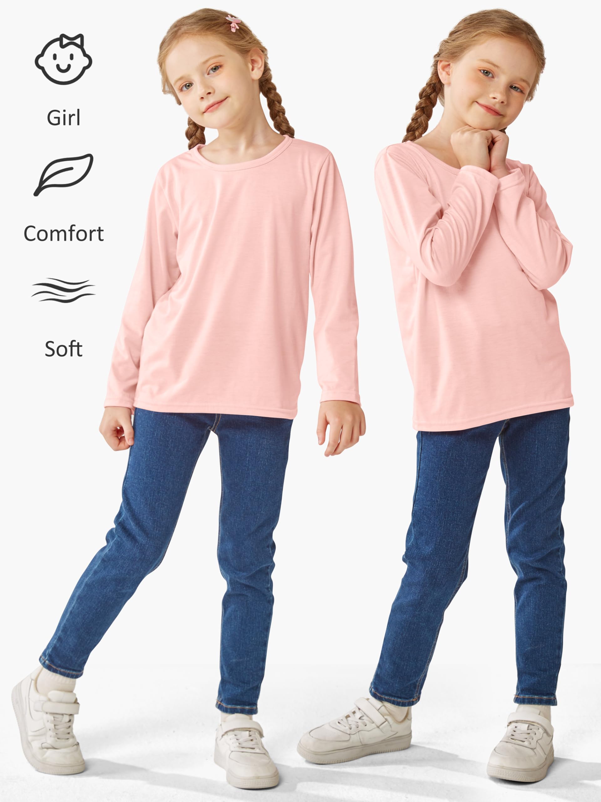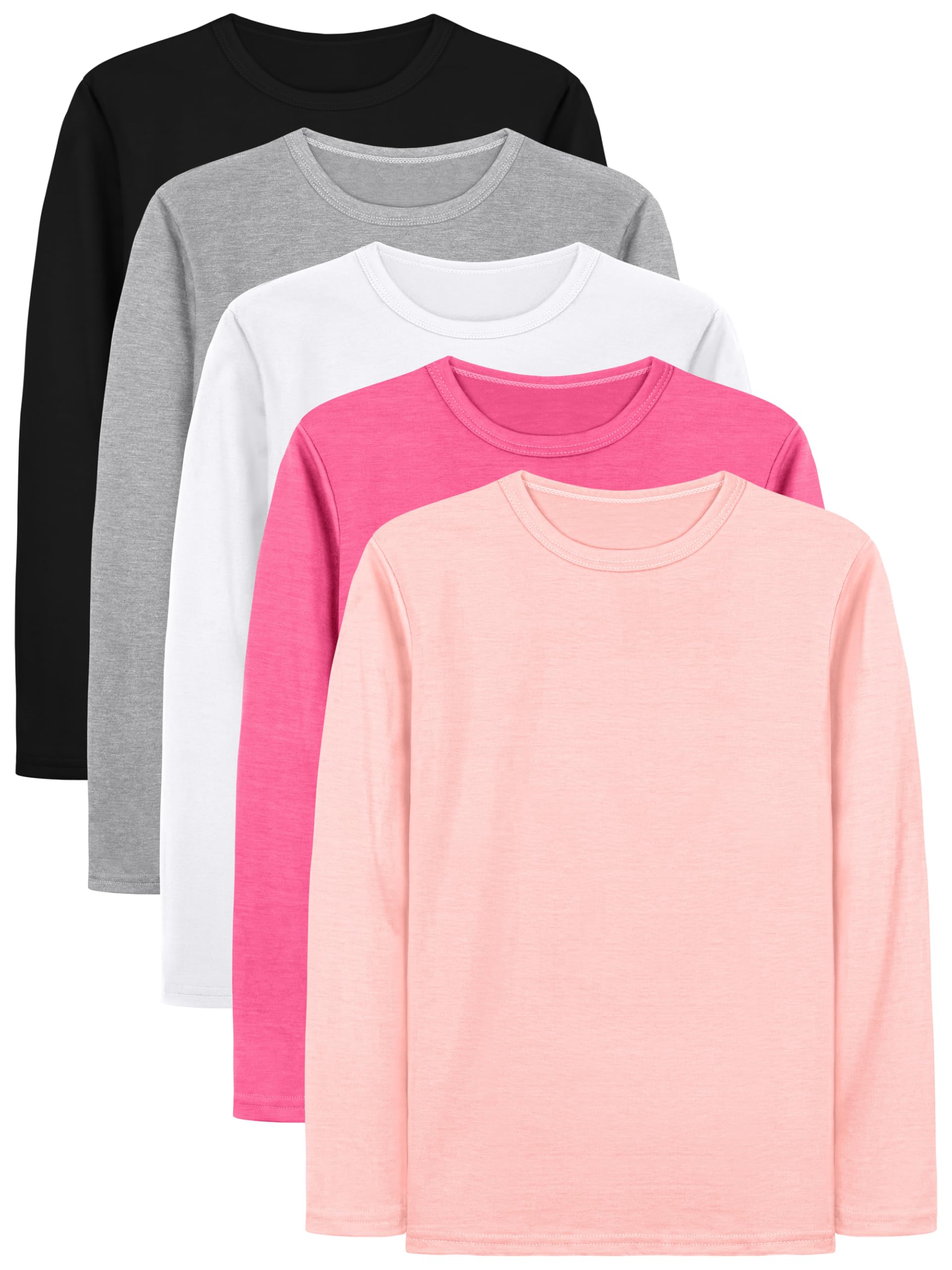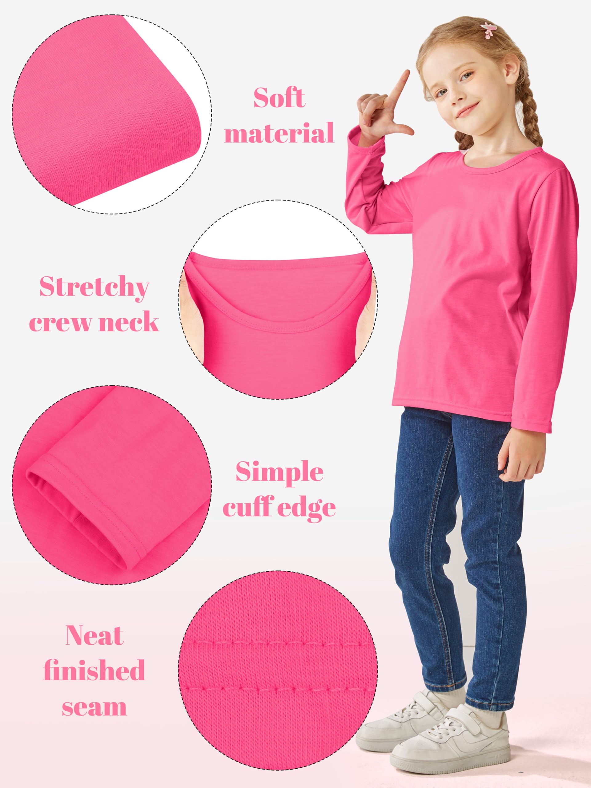 Package includes: there are 5 packs of girls' long sleeve t-shirts in each package, sufficient for changing and washing; there are various colors and sizes for you to choose from, please check the size before purchasing