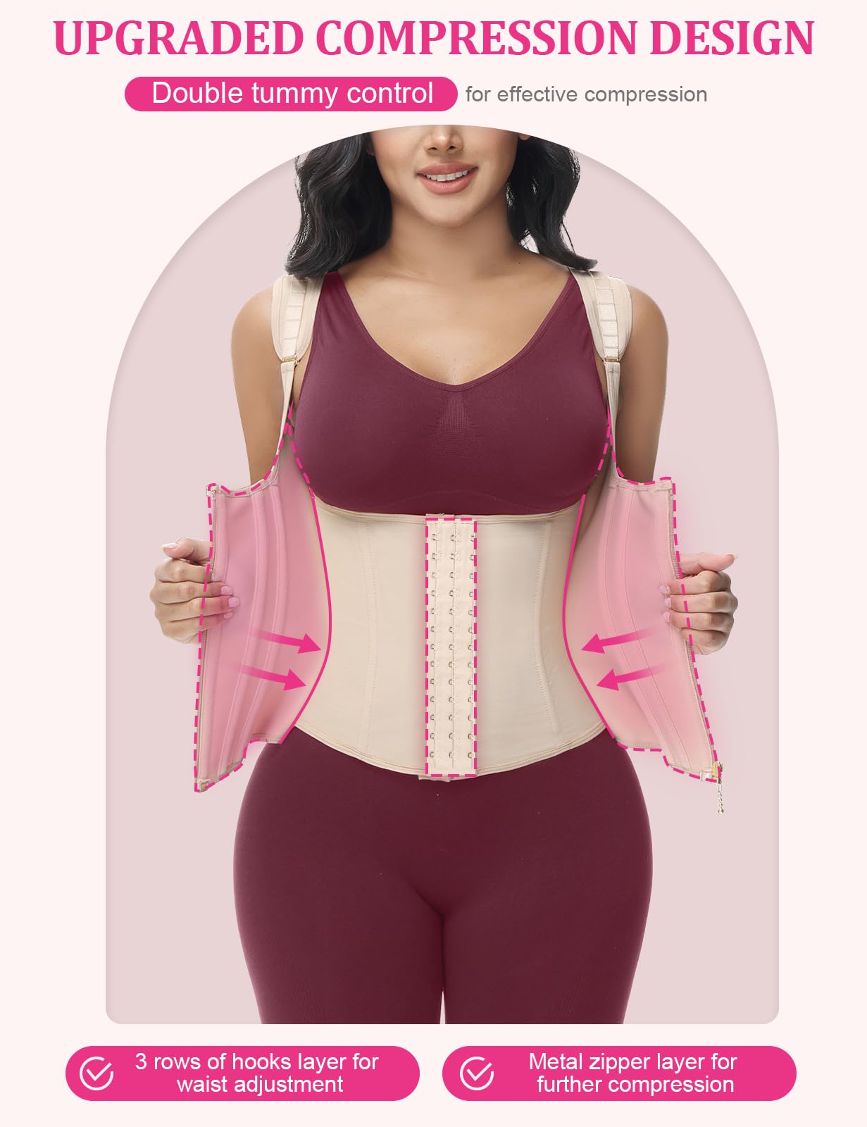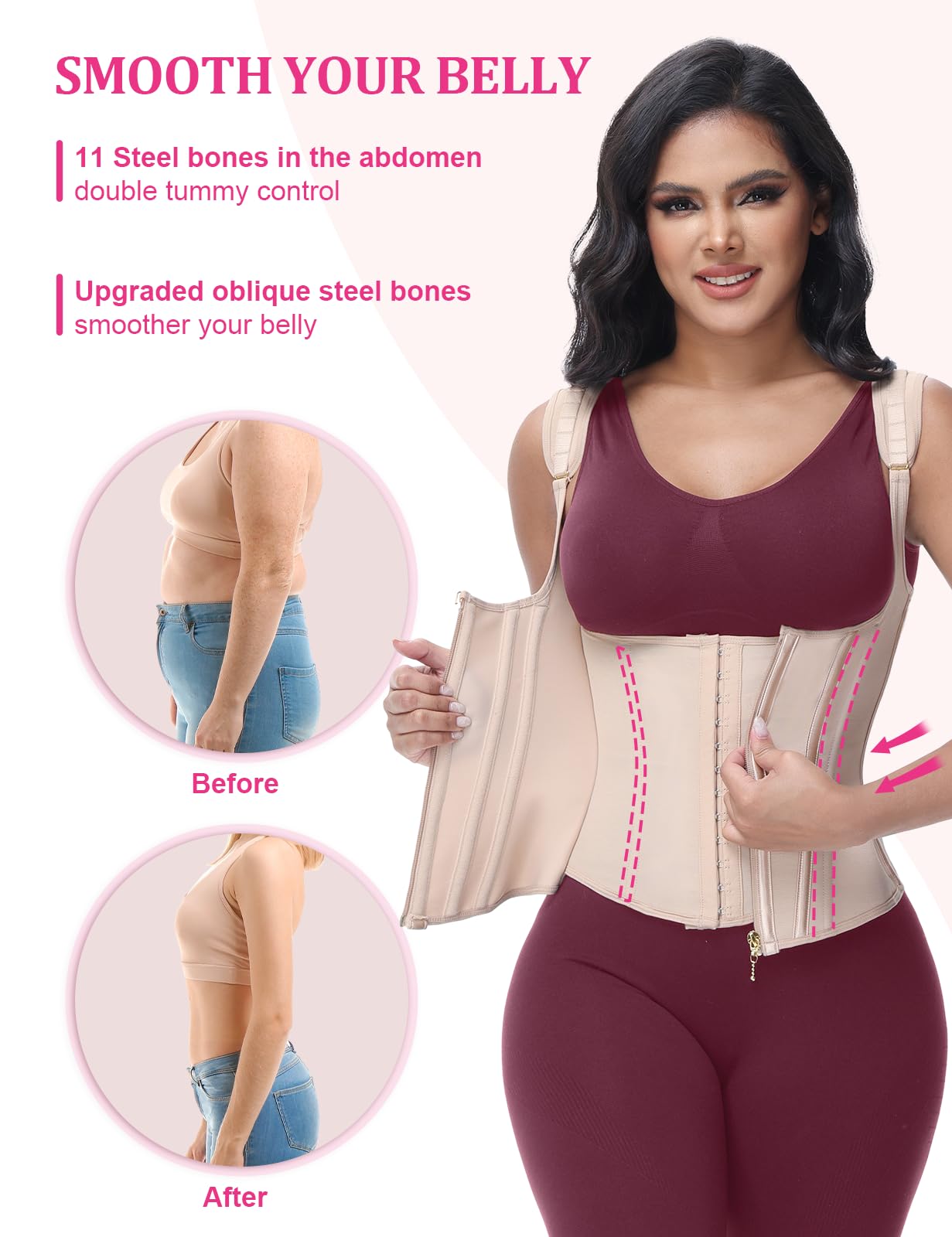 Suitable for All Stages: SHAPSHE waist trainer vest has 3 rows of adjustable hooks and eye, You can adjust the hooks according to the effect you wear. The shoulder strap has 7 adjustment gears, which you can adjust according to the length of your torso without getting stuck in your chest.The waist and shoulder straps do not roll, making it suitable as an waist trainer for women working out.