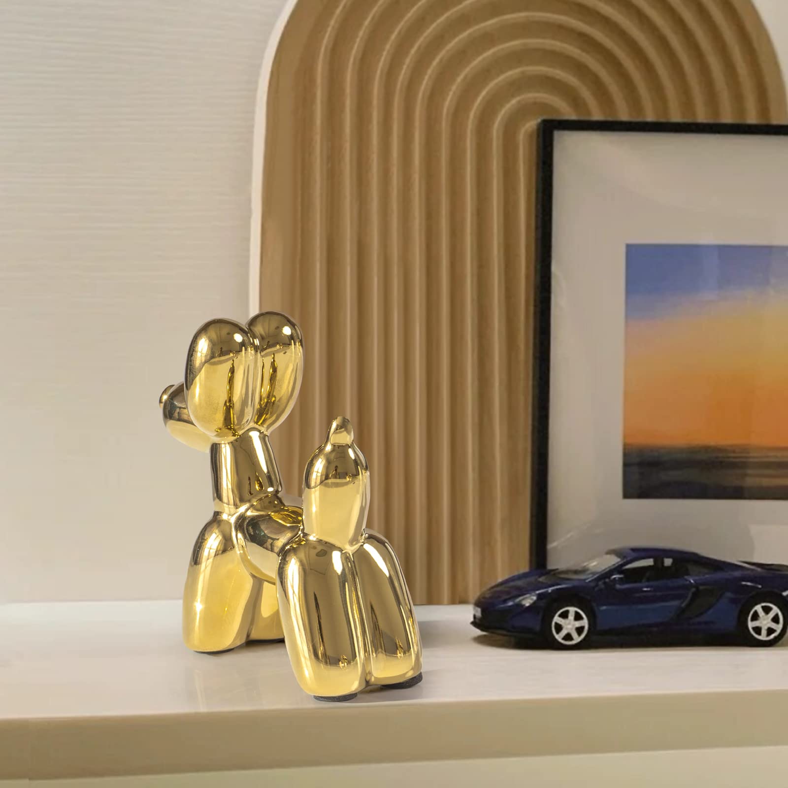 High Quality Material: The balloon dog sculpture is made of non-toxic, odorless, strong and durable high-quality Ceramics , mirror effect, can be used for a long time. with A Layer of Golden.Looks cute and smooth by using surface polished craft