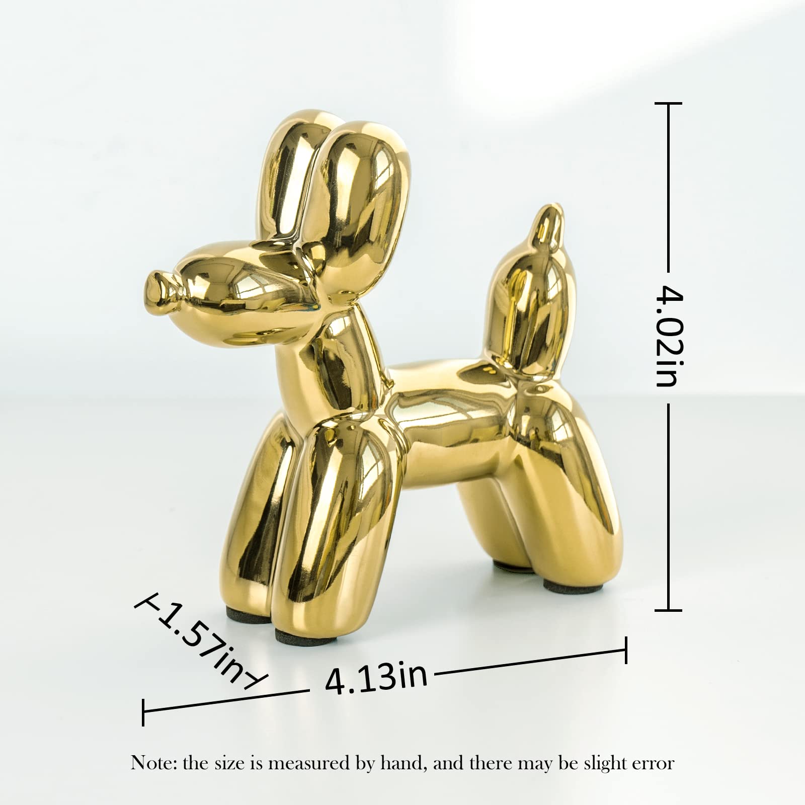Exquisite Size:Golden Ceramics Balloon Dog 10.5*4.0*10.2cm / 4.13*1.57*4.02 inches. Well made, Super shiny and feels sturdy. Love this little decor item