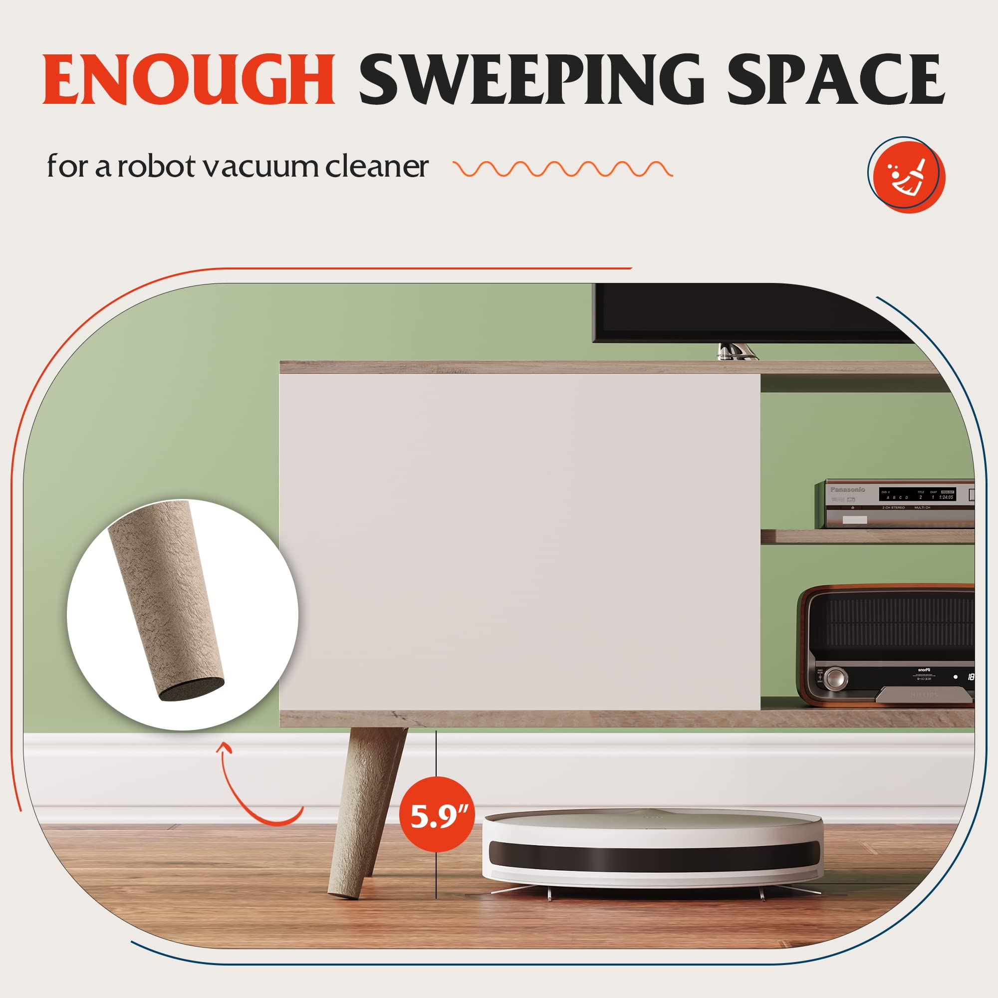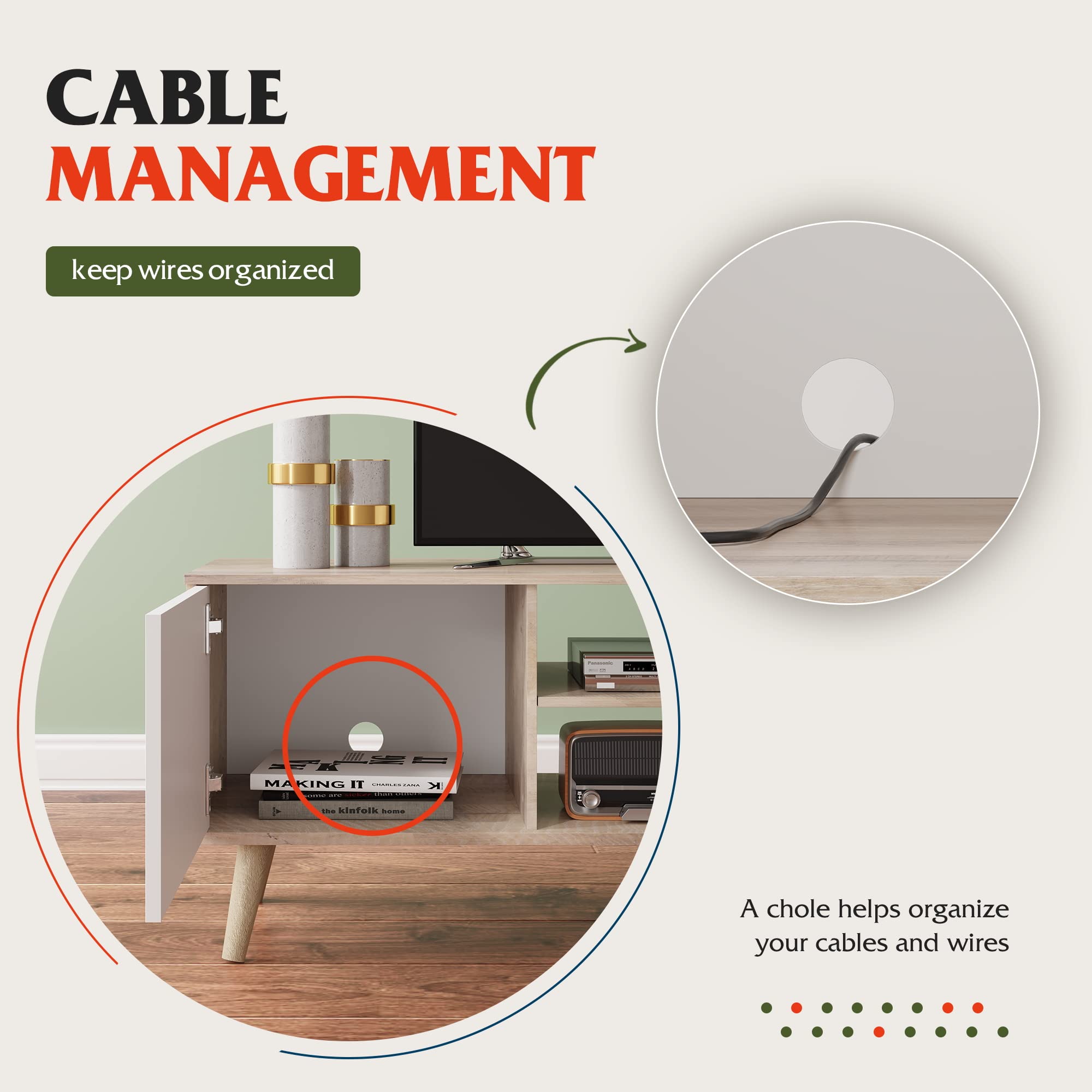 【CABLE MANAGEMENT】Holes in the back allow cables for various devices to pass through. Crafted from engineered wood, this wood TV stand is stable and durable, foot pads on the legs avoid scratching your floor.
