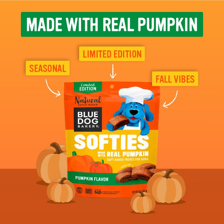 Pun’Kin Softies swap out peanut butter for real pumpkin to bring the delicious taste of fall in one bite. These treats are baked soft so they are easy to chew and enjoy for all dogs