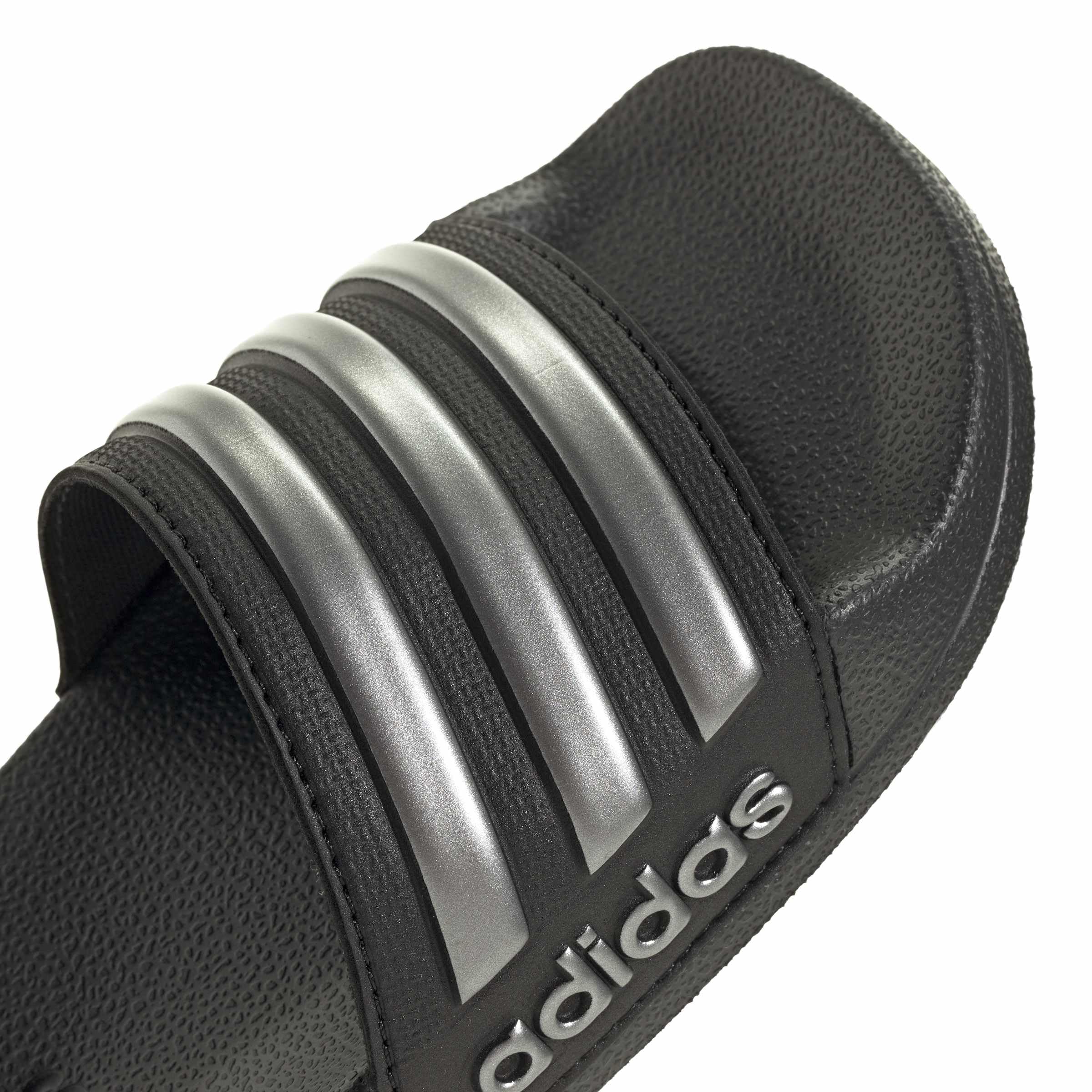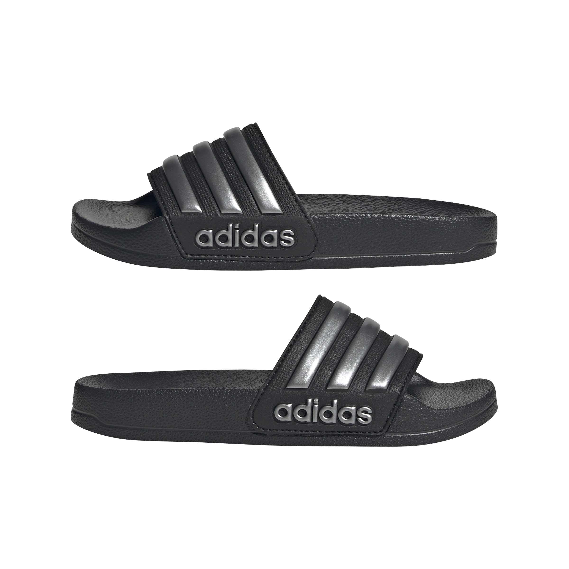 Description After their swim, treat kids' feet to comfort in these slides. The quick-drying slip-ons have a contoured Cloudfoam footbed that cradles small feet. The 3-Stripes on the bandage offer a touch of adidas style.