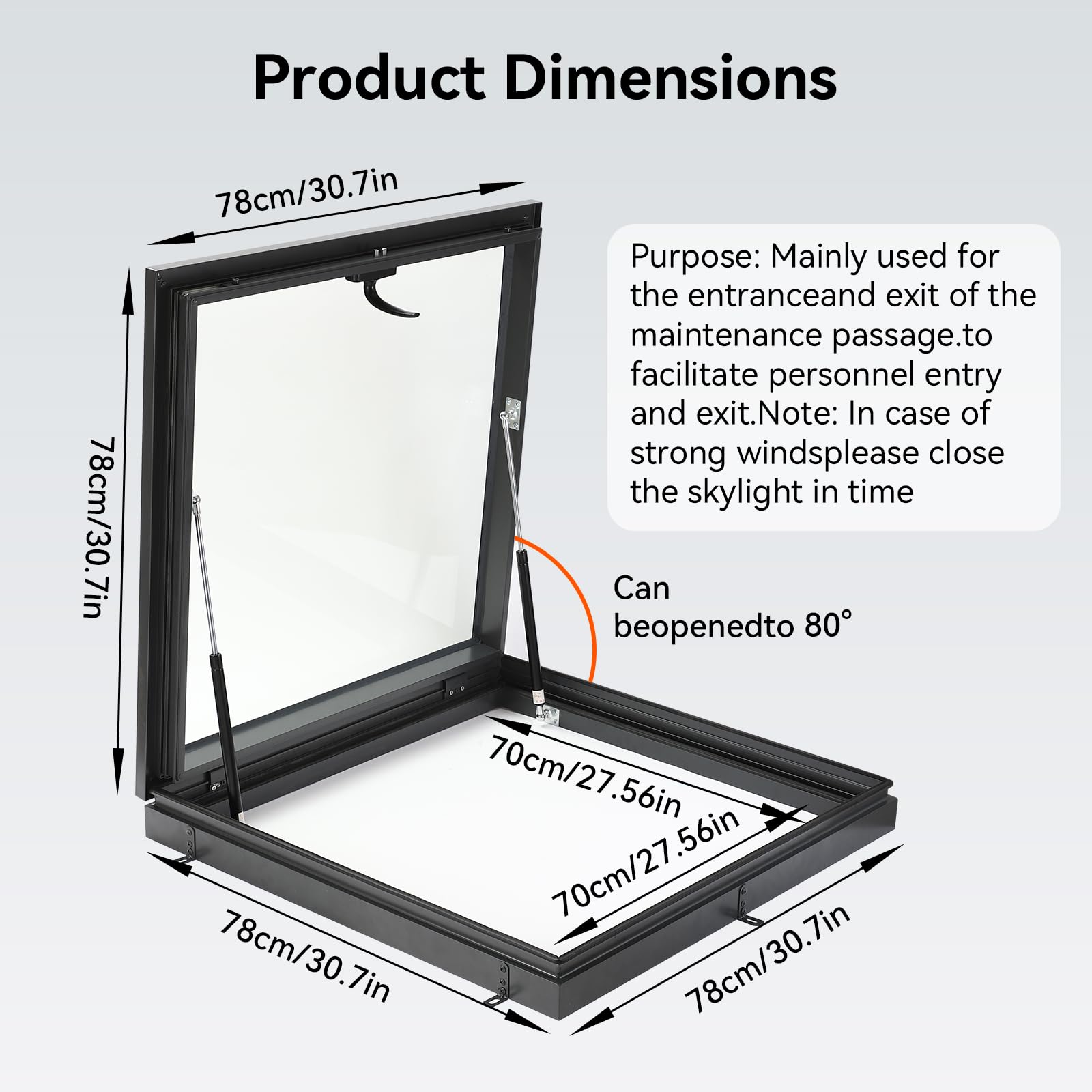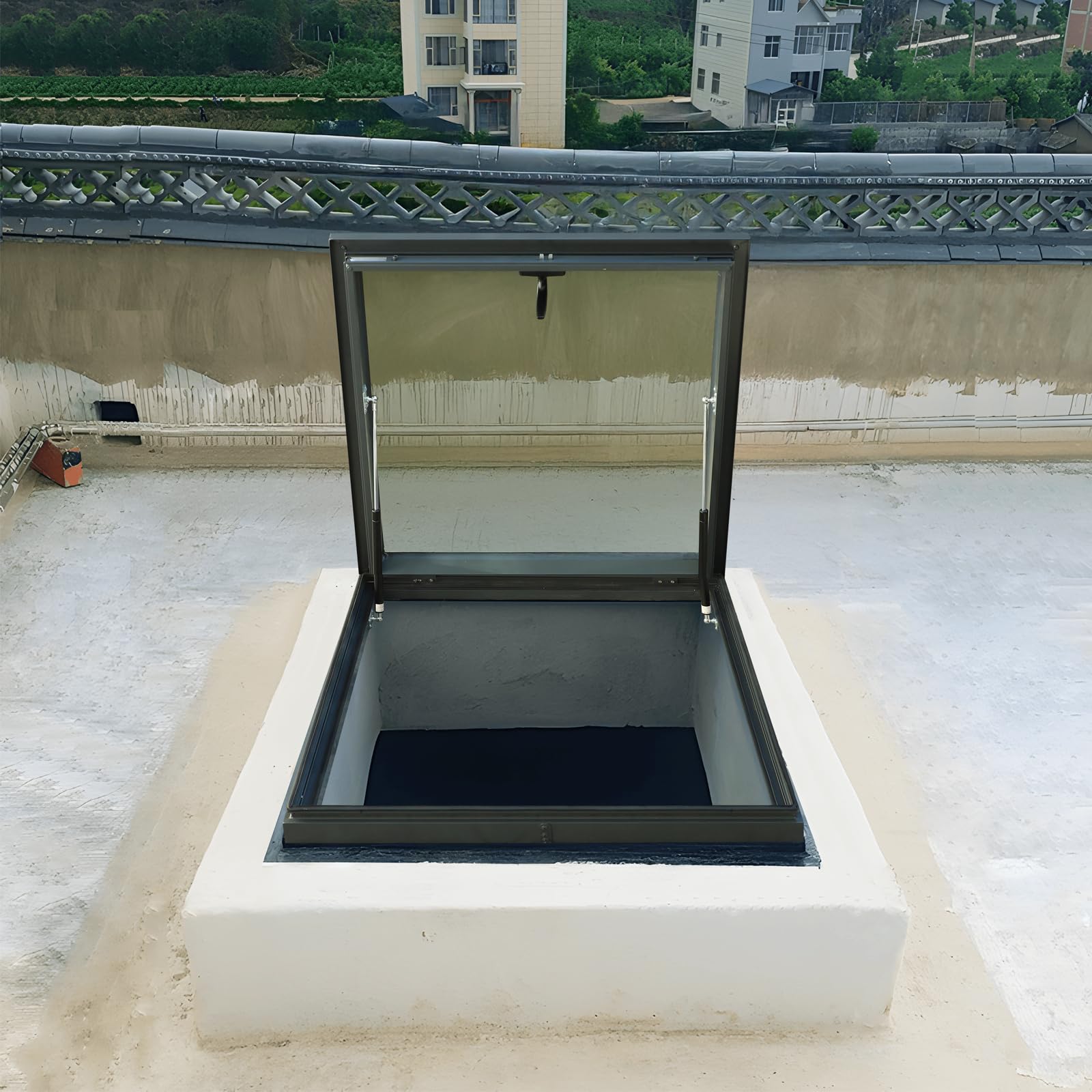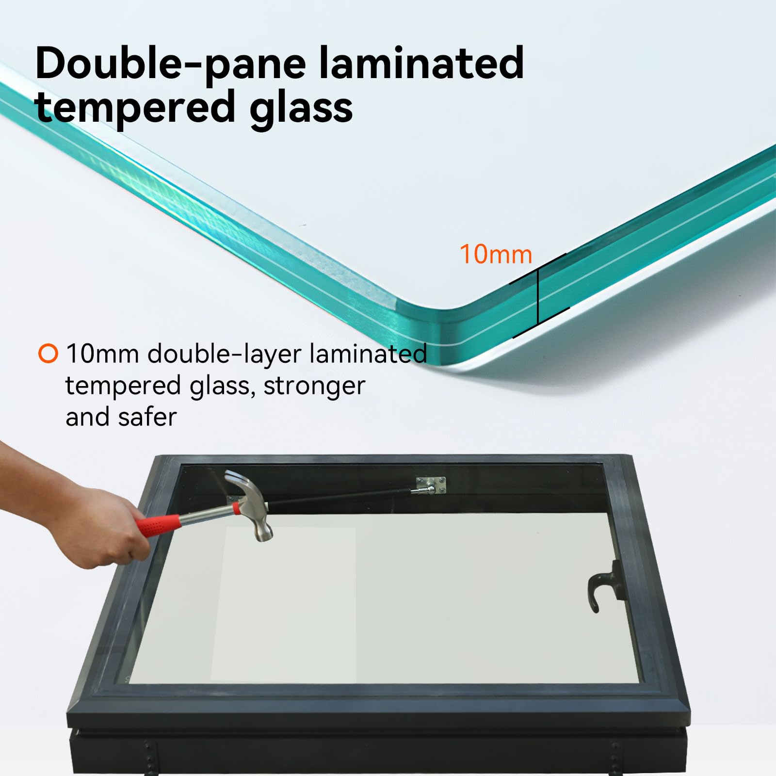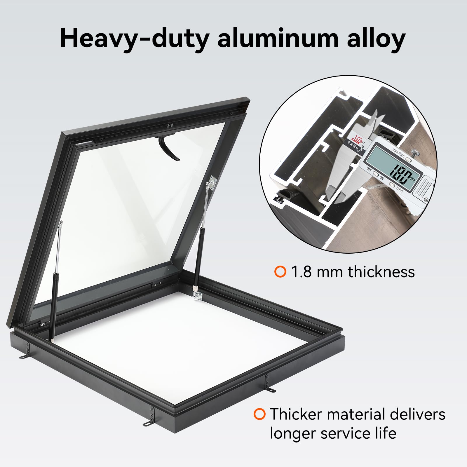 ROOFTOP HATCH COVER PLATE: Made of 1.8mm thick aluminum and 10mm double-layer laminated tempered glass, this roof skylight cover is strong enough, ensuring long-lasting use even in challenging environments. for roof hatches, cellar cover basement exit lid, or any other basement skylight installation