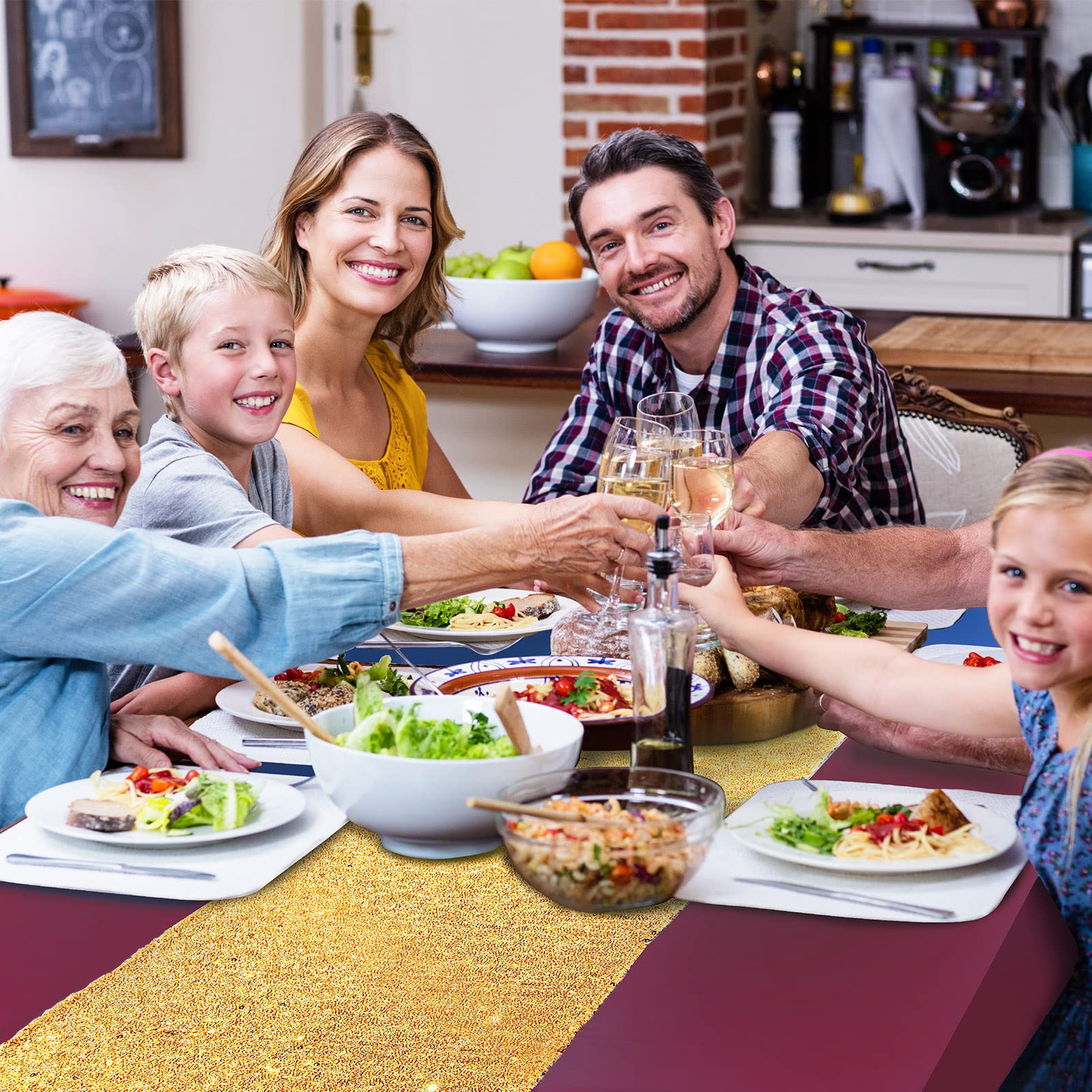 Dimension information: the glitter tablecloth measures approx. 12 x 108 inches, and the other plastic table cover is about 54 X 108 inches, large enough for you to decorate your table, moreover, suitable for most styles of tables