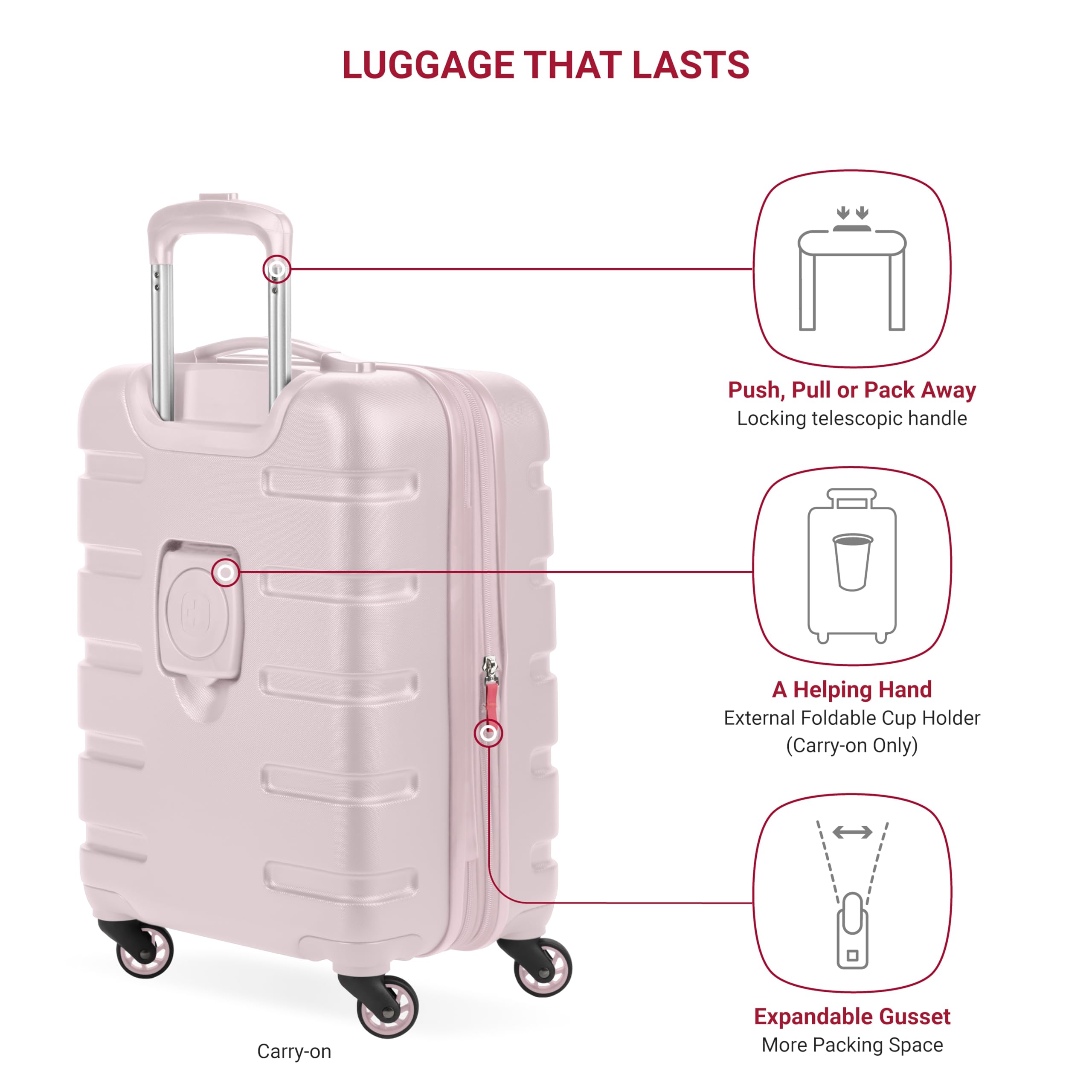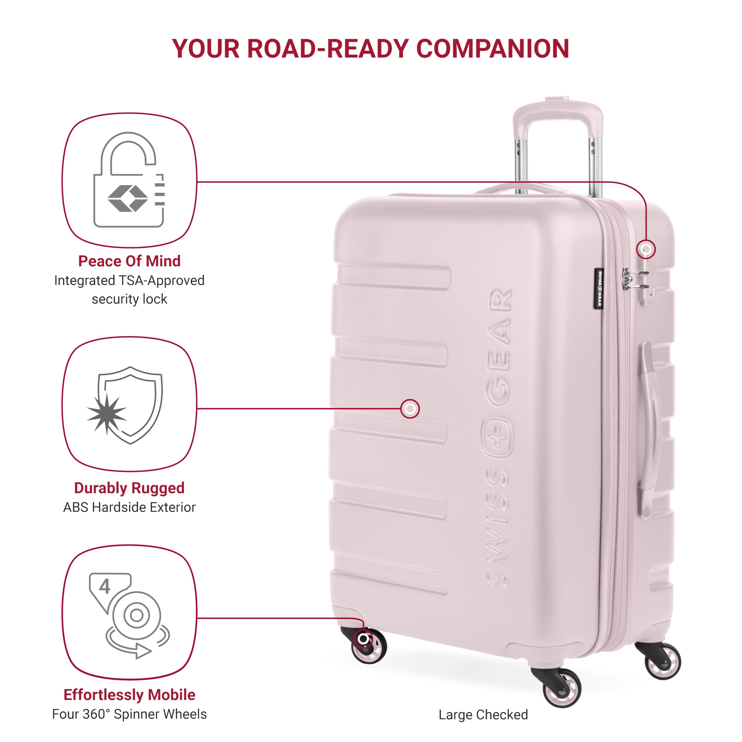 Four 360-Degree Multi-Directional Spinner Wheels: Built with maximum maneuverability in mind so you can navigate busy airports and small spaces with ease