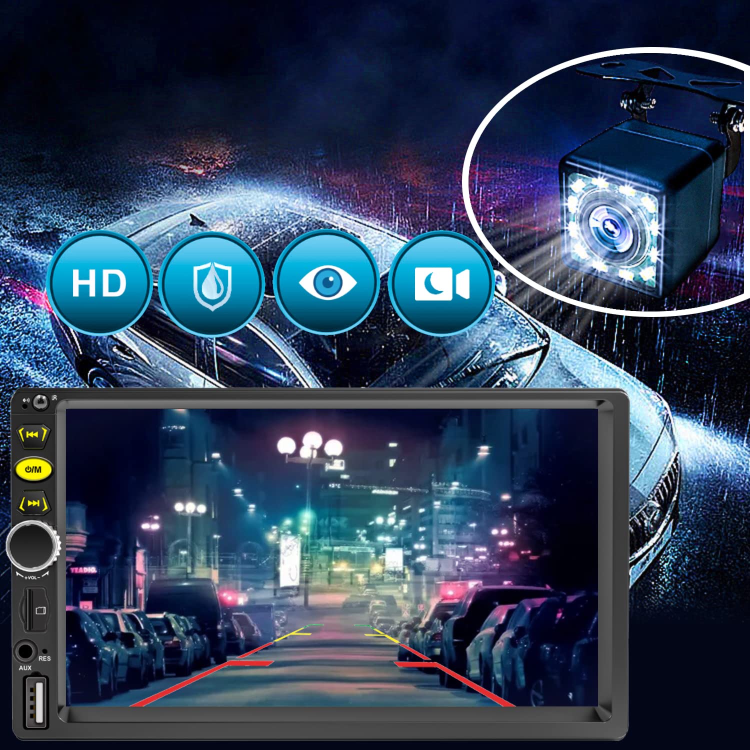 4) Car Stereo with Backup Camera & Steering Wheel Control: Steering wheel control function allows you to take easy control on switching songs, hands free calls, volume control, more convenient when you are driving, so that you will not be distracted by driving. Double din car radio support rear view camera input. Waterproof, Night Vision, Wide Angle, Easy Installation and Safety Assist. Connect the reversing camera, car audio receivers display will automatically turn to the rear view details.