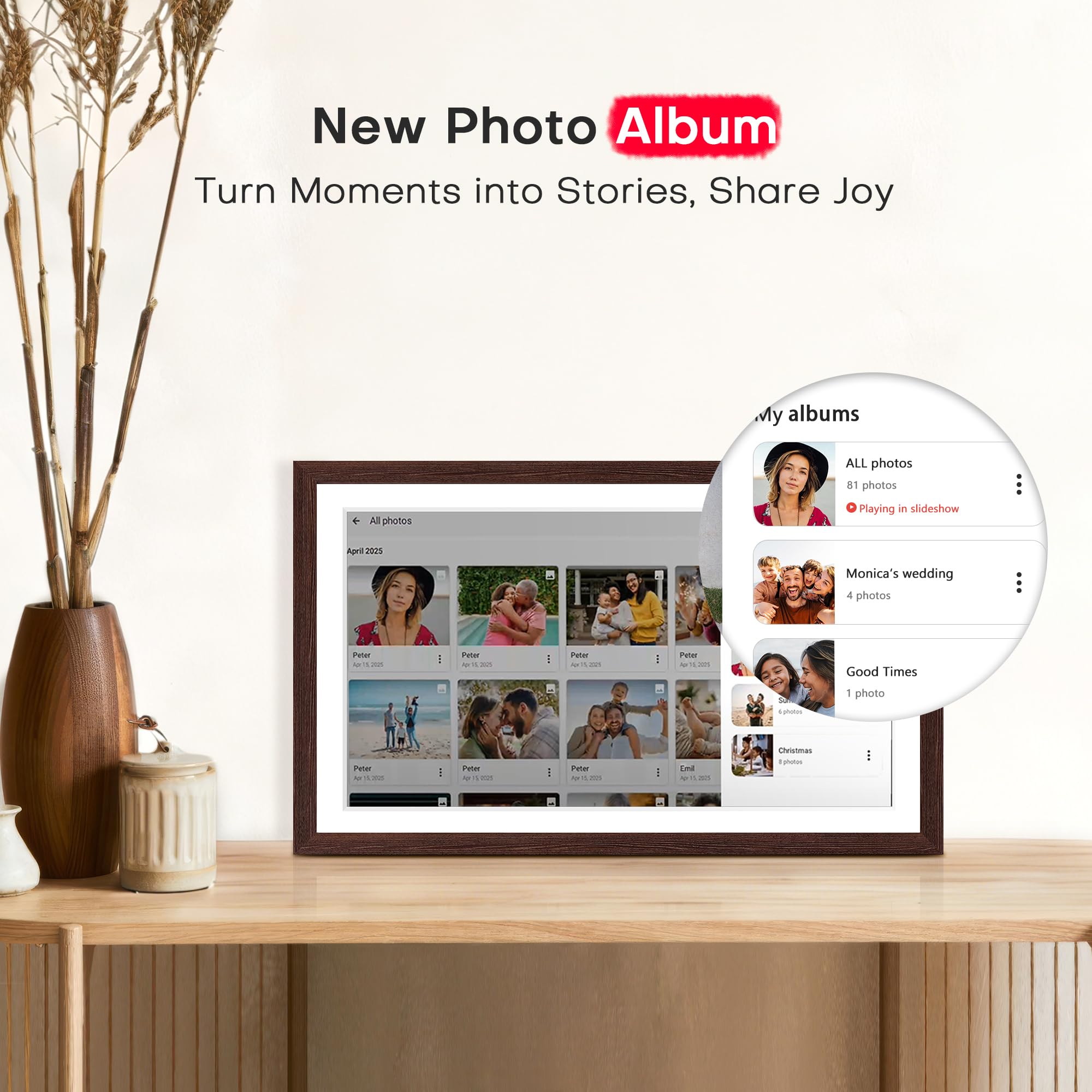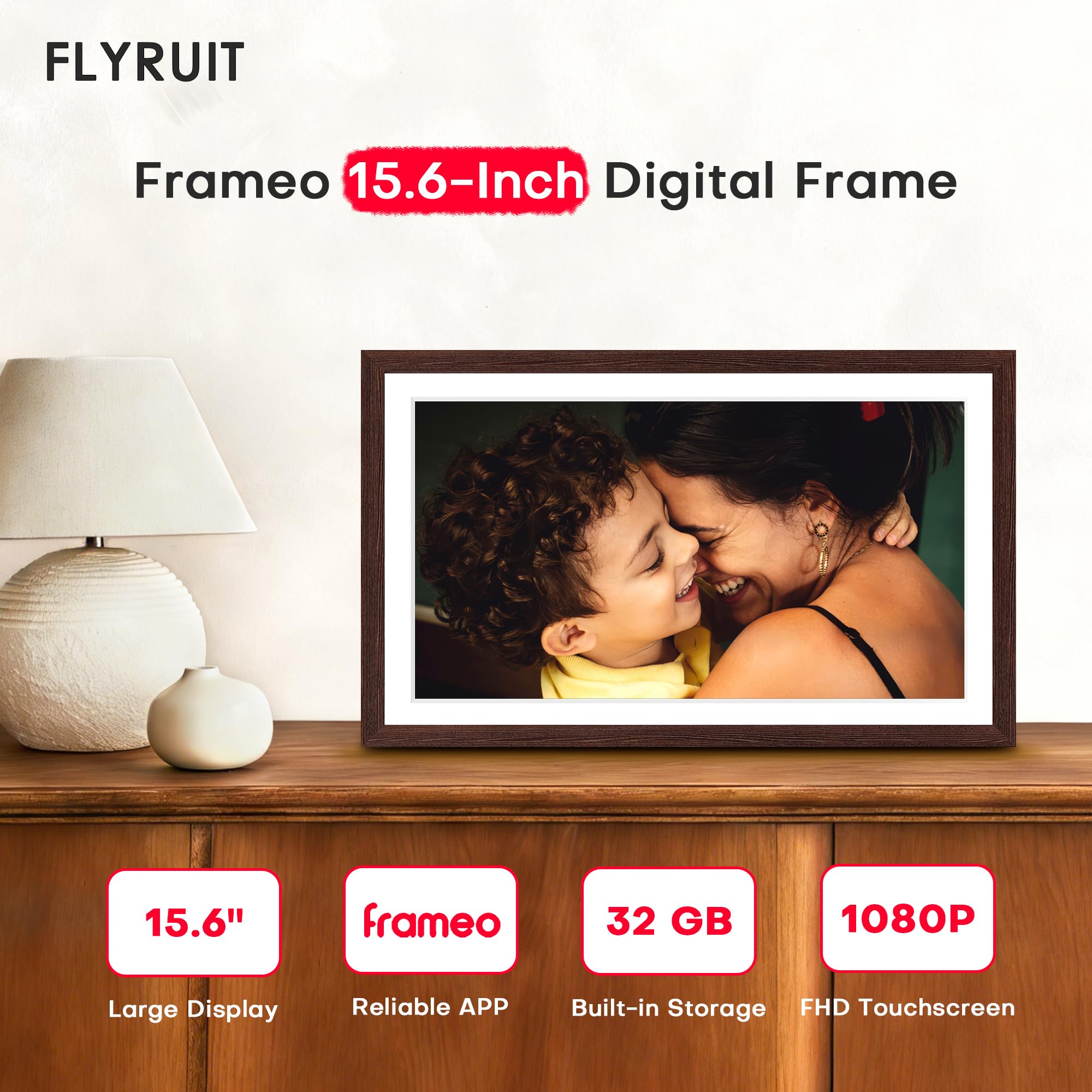 A Warm Gift to Give; Struggling to find a meaningful gift? Whether it's for birthdays, weddings, parents anniversary, housewarmings, retirement, or just to show appreciation, Flyruit frameo 15.6 inch large digital photo frame is the answer. A timeless gift for anyone—mom, mad, grandparents, couples or friends—it’s not just a picture frame, but a way to hold onto life’s most precious moments. Delicately packaged, this wifi digital frame is ready to bring joy the moment it’s opened