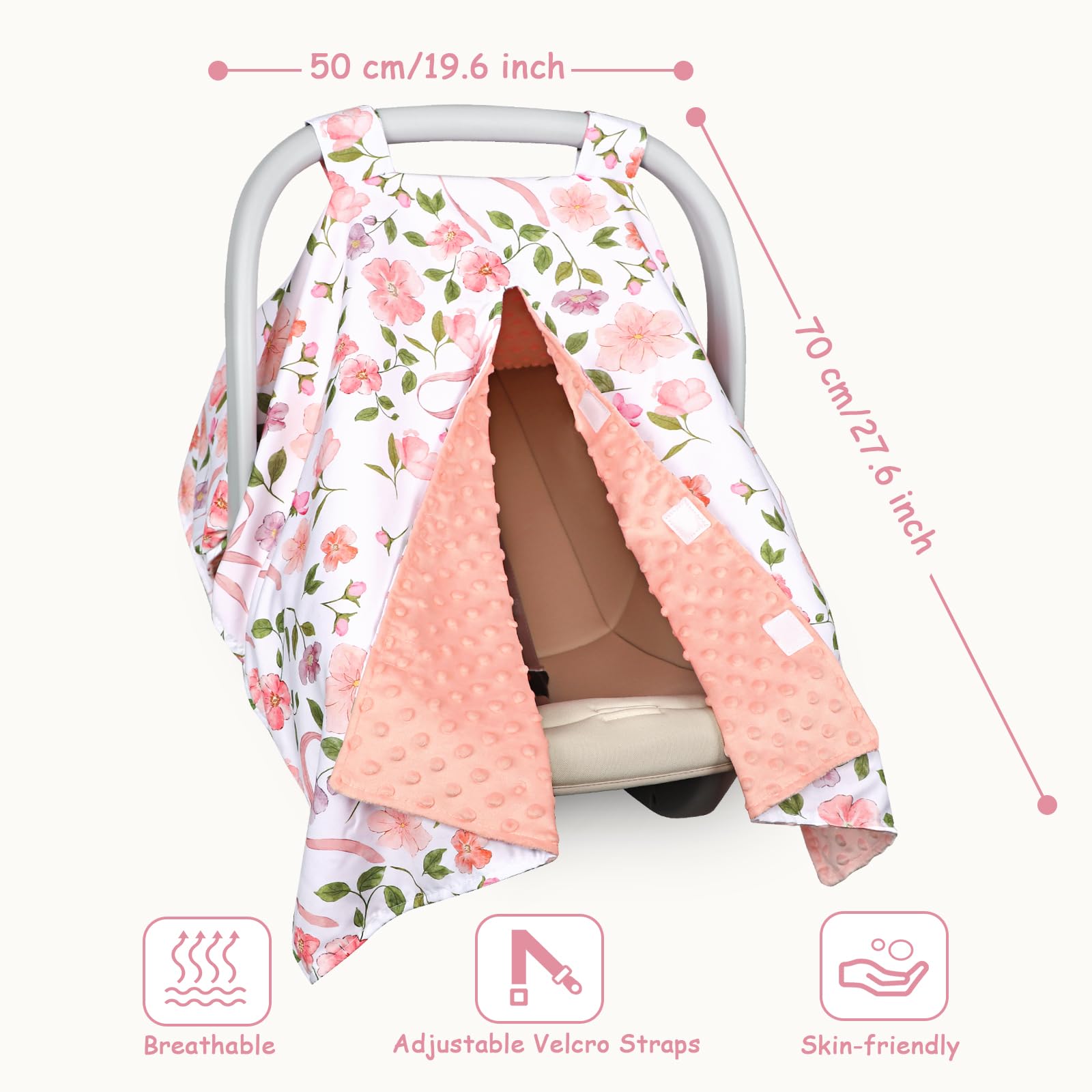 Double Layer Fabric: This baby girl car seat cover is made of high-quality Minky fabric and double-layer design, the outer layer is durable polyester printed with various cute patterns; the inner layer is warm short fleece with soft short pile, suitable for all seasons.