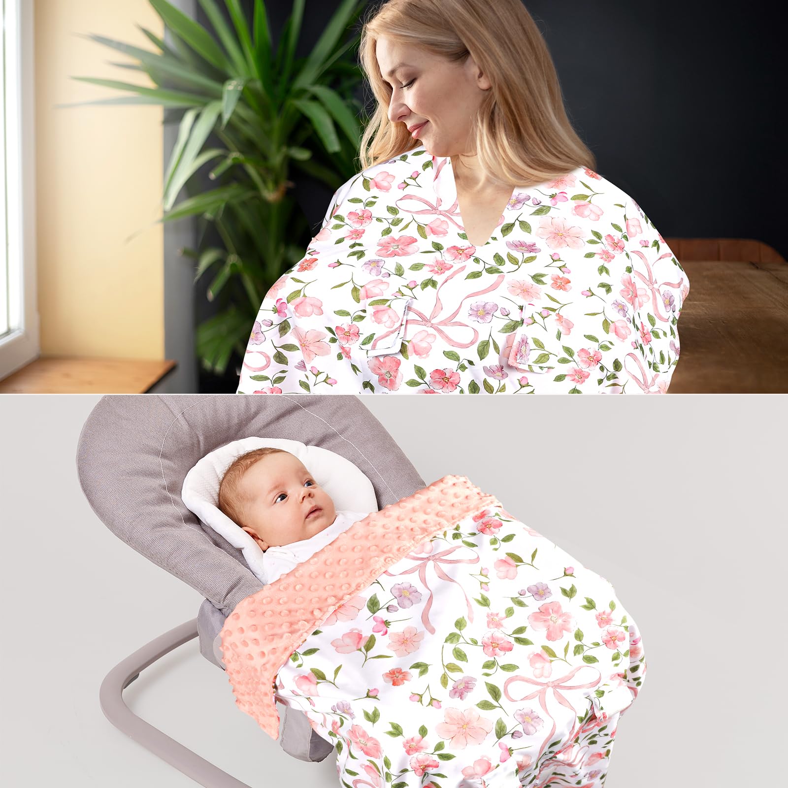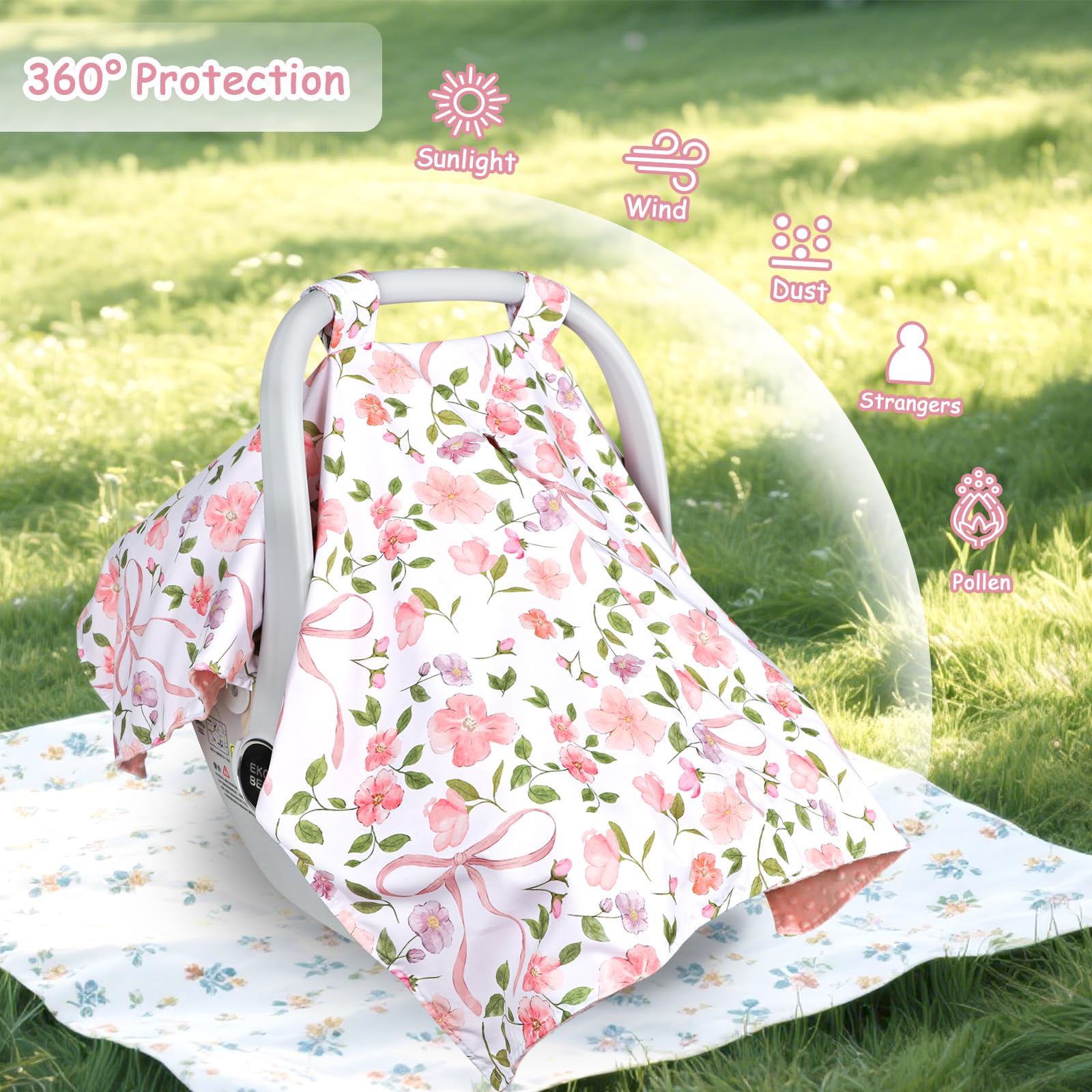 Versatile Multi-Use Design: This premium car seat canopy transforms into 4 essential baby items. Use as Full-coverage car seat shade, breastfeeding privacy cover, soft diaper changing pad and plush baby blanket.