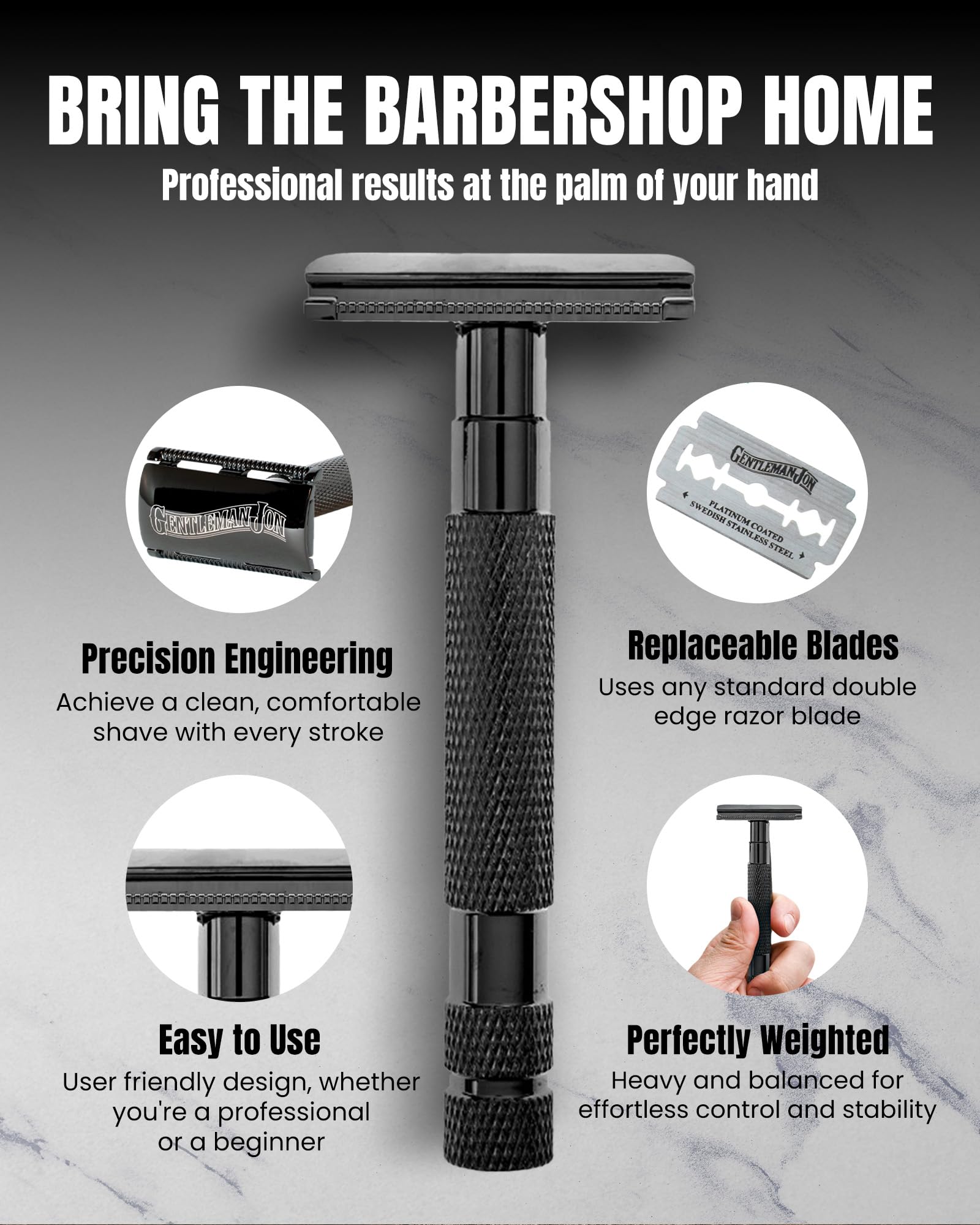 SAFETY RAZOR SET: Our safety razor set for men provides a close shave without causing irritation or razor burn. It comes with five razor blades that are easy to change, and the razor is also designed to be easy to clean. The set also includes an alum block to soothe the skin and prevent nicks and cuts after shaving.
