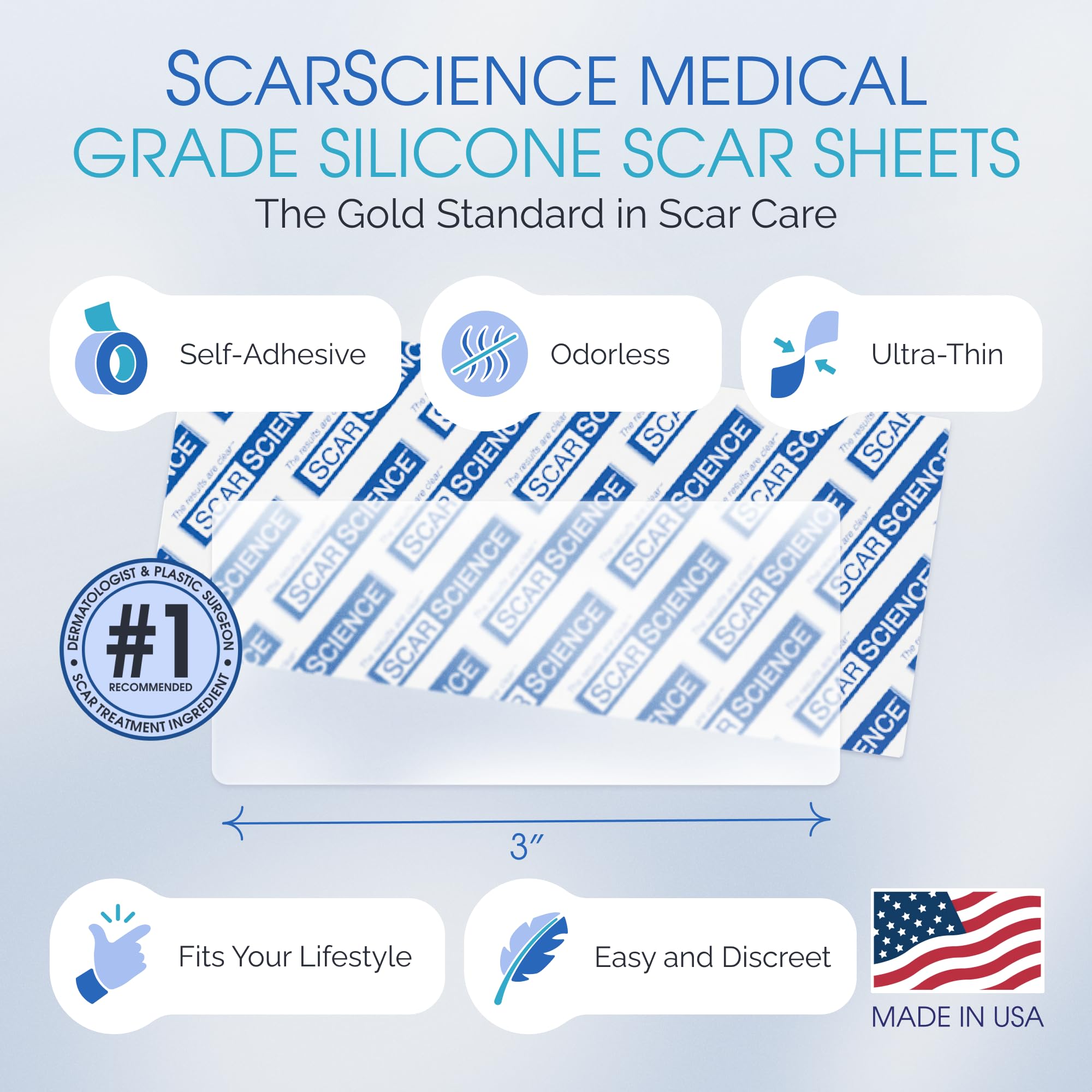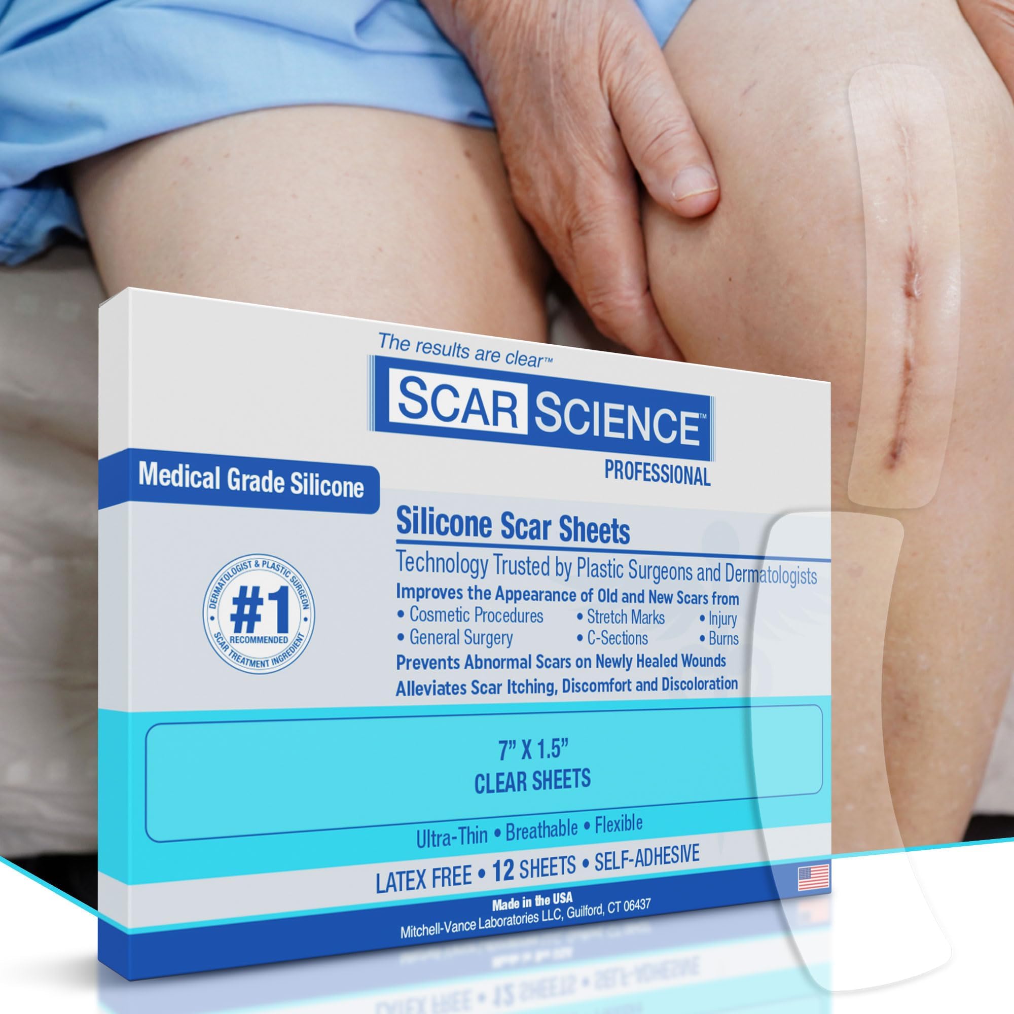 Medical-Grade Scar Reduction - ScarScience advanced silicone scar sheets are formulated with medical grade silicone. Designed for both new and old scars including hypertrophic or keloid scars resulting from injuries, burns, surgeries, C-Sections, Tummy Tucks, Stretch Marks, cuts and more. May be used on new scar areas and newly healed wounds to reduce the appearance scarring.
