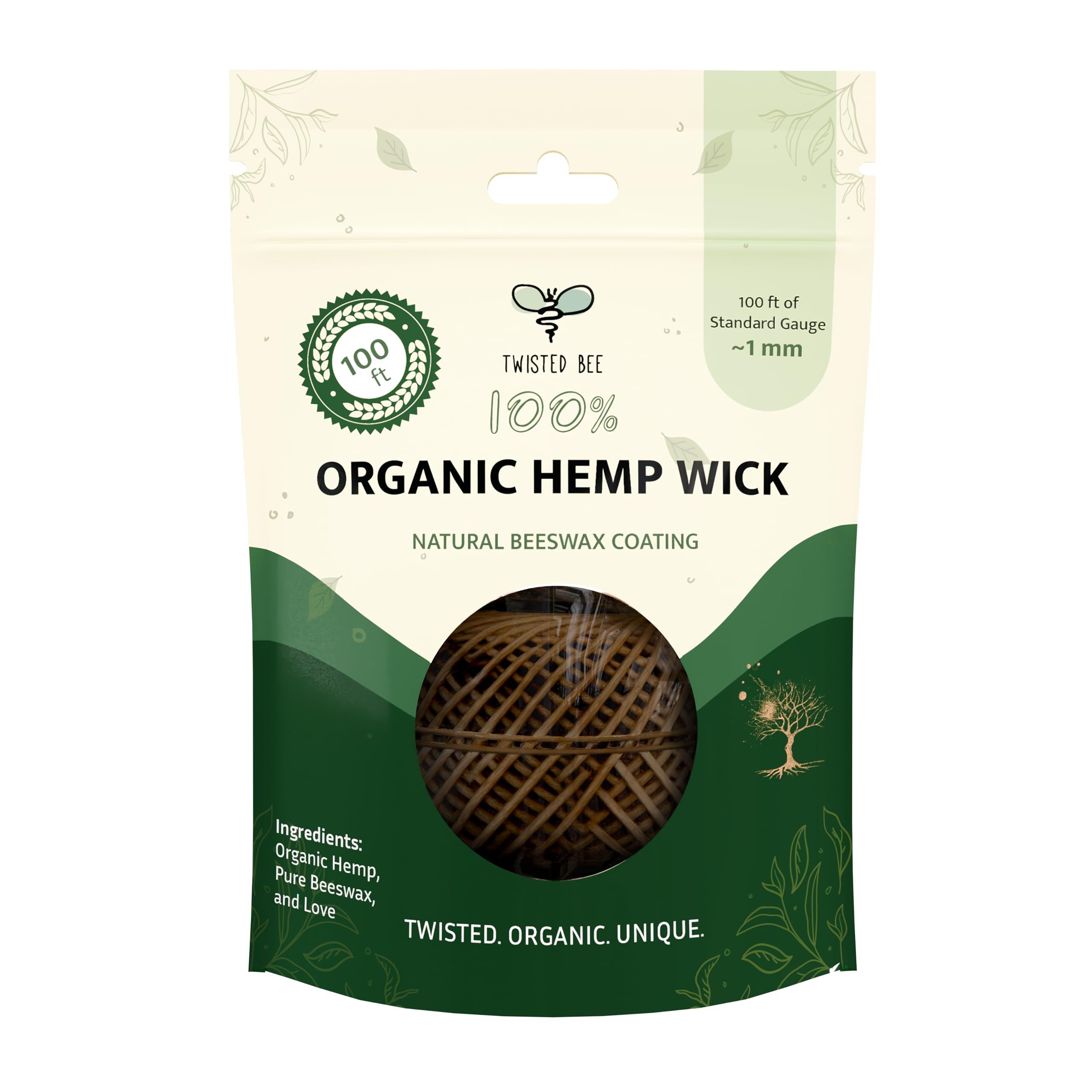 Twisted Bee Standard Organic Hemp Wick is the perfect, natural alternative to butane lighters and a great option for your next arts and crafts project. Order now and experience for yourself why Twisted Bee is rated the #1 Hemp Wick available. 100% ORGANIC HEMP WICK Premium, un-dyed hemp wick coated in organic beeswax. Crafted from organically grown European hemp (we still can’t grow commercial hemp in the USA) and made in-house for guaranteed purity and environmental sustainability. SMOOTHER BURN Keep things nice and easy and light what you want, when you want. Our Hemp Wick has a consistent all-round burn so that you can light up and relax without any fear of unexpected or uneven burning. BETTER FLAVOR Avoid the nasty notes of butane or chemicals that can ruin the healthy, natural aromas and flavors of your next smoke. Our Hemp Wick is only made with raw and organic materials and contains absolutely zero synthetic materials, allowing you to just enjoy the good stuff. PERFECT FOR CANDLE MAKING Utilize a premium, safe and durable hemp wick twine for candle making, book binding and tons of other craft projects. Ideal for making tea lights, votives, tapers and other similar candles. Our Hemp Wick is safe for children and perfect for a huge range of uses that include everything from gardening to retail packaging. ALL NATURAL Use a natural, non-synthetic alternative to butane lighters without a chemical or harmful compound in sight. Everything from the growing to twisting of Twisted Bee Hemp Wick is done in-house to ensure end-to-end purity and total quality control of the process. NO MESS, NO STRESS Enjoy a clean, slow burn and drip-free hemp wick that holds a low temperature flame for effortless lighting and no cleanup. ** Click the "ADD TO CART" button and order now! This product is backed up by our 100% SATISFACTION GUARANTEE and outstanding customer service for no-risk purchasing.**