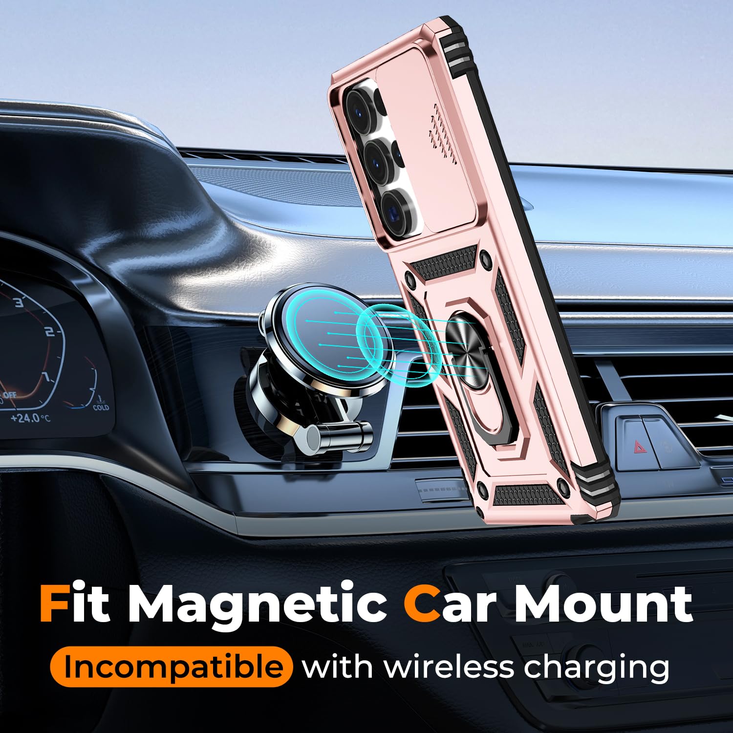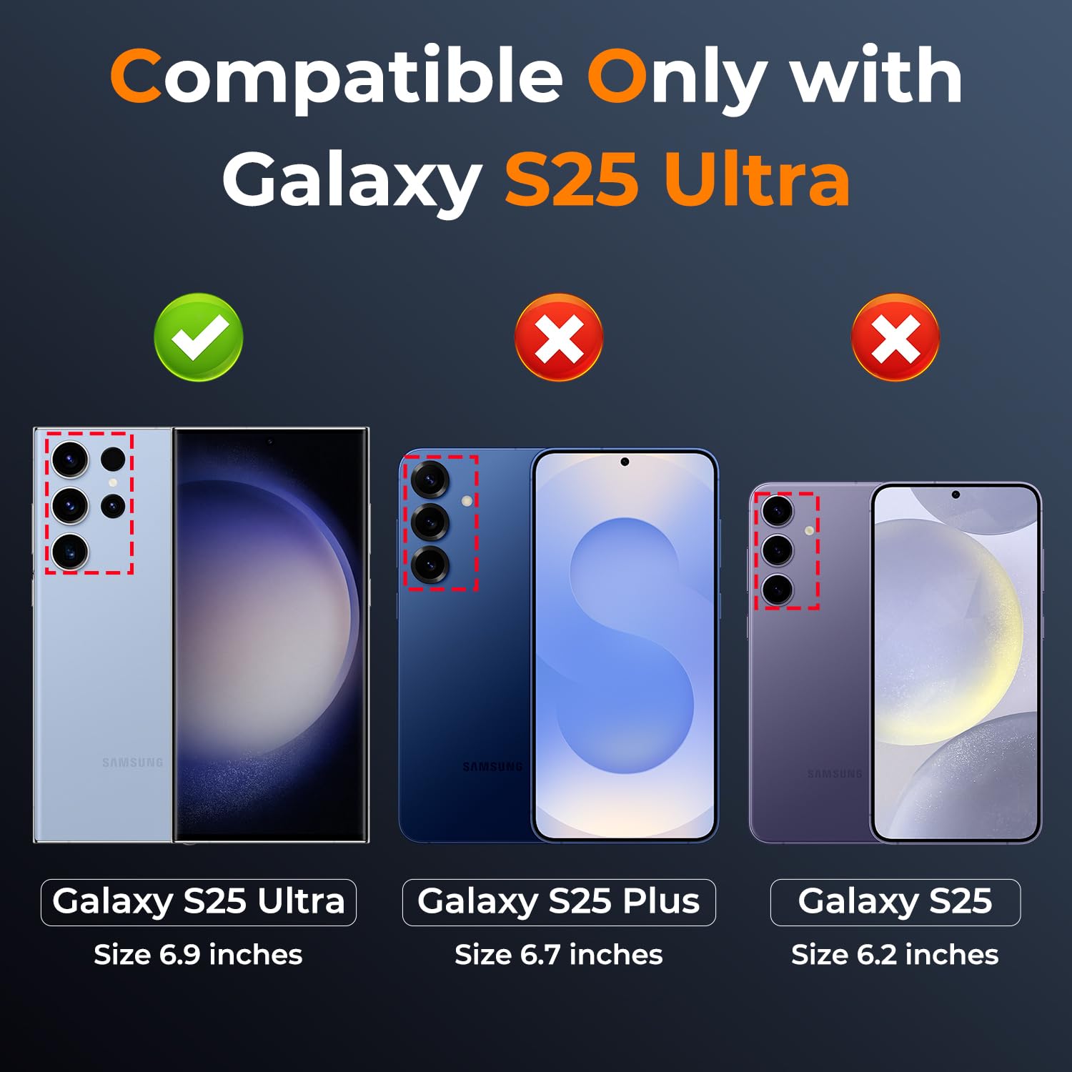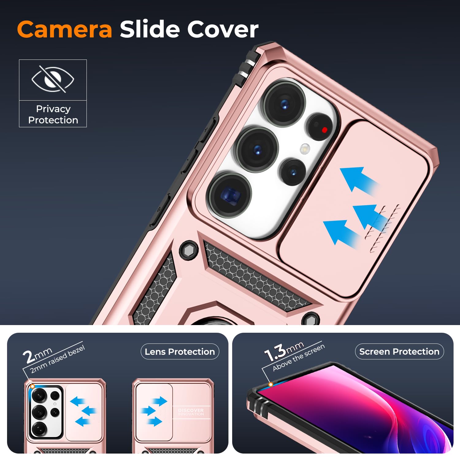 【Compatible with】Armor Case with sliding camera cover specially designed for Samsung Galaxy S25 Ultra. NOT fit for other device! The precise cut out fits each button, camera, speakers and ports precisely, easy to press and access. ⚠️Notice: Due to the metal ring on the back, the case will NOT work with wireless Charging function