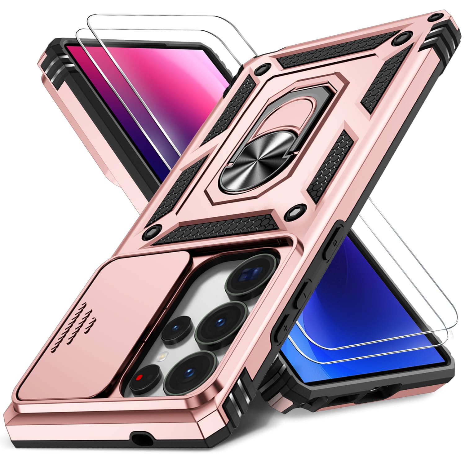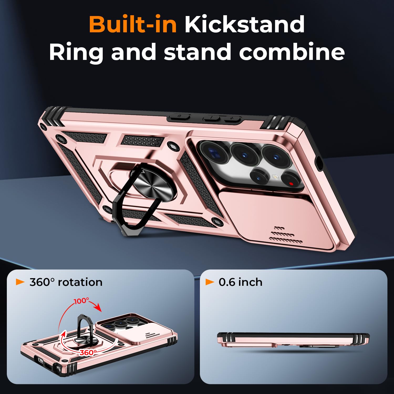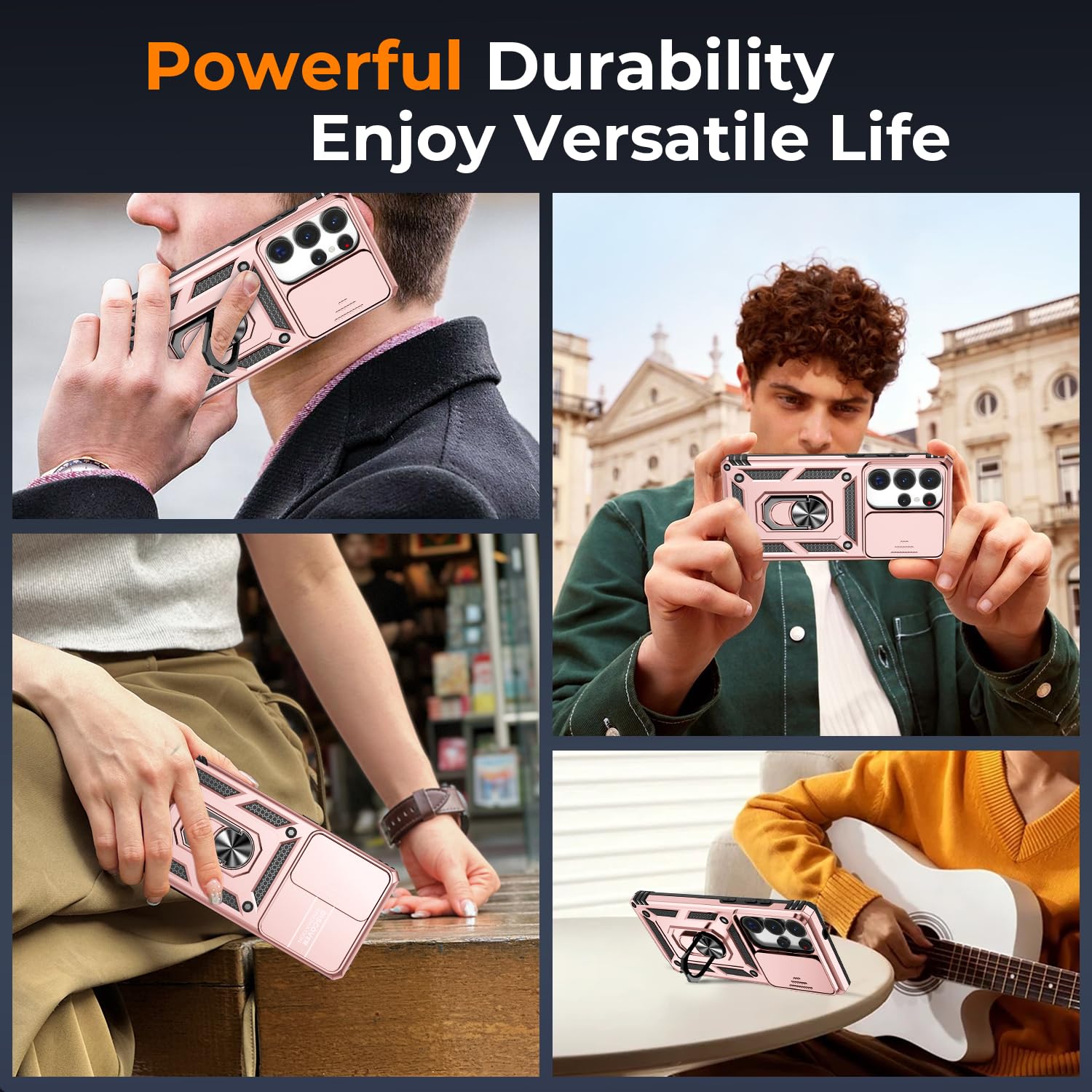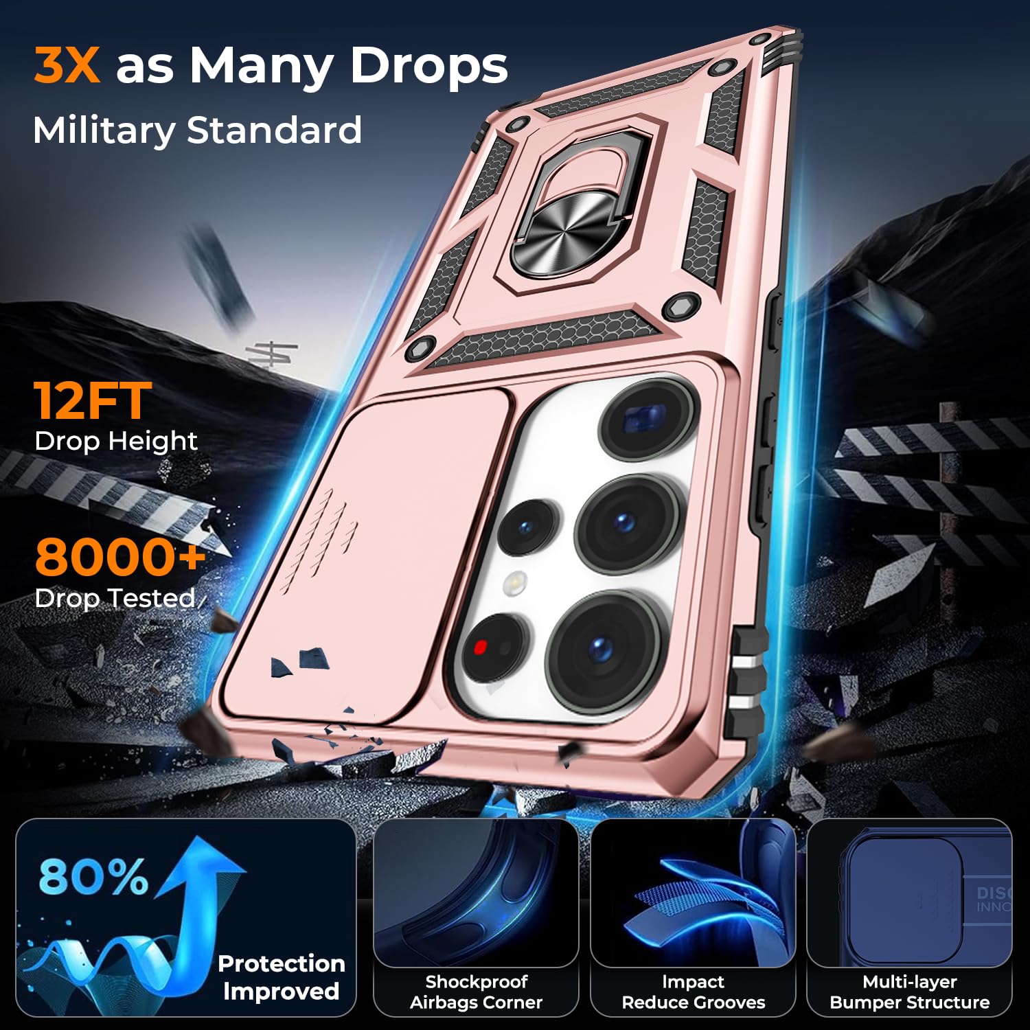 【Compatible with】Armor Case with sliding camera cover specially designed for Samsung Galaxy S25 Ultra. NOT fit for other device! The precise cut out fits each button, camera, speakers and ports precisely, easy to press and access. ⚠️Notice: Due to the metal ring on the back, the case will NOT work with wireless Charging function