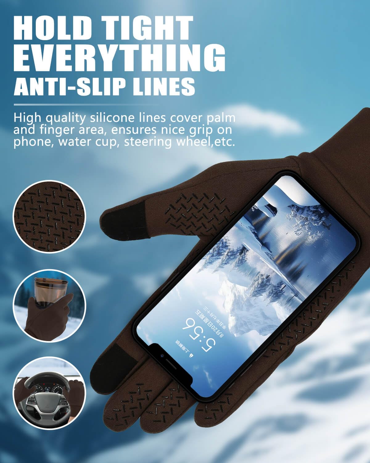 🏃【Non-Slip Palm Design】 Covered with anti-slip design of big silicone lines on the palm and fingers, which effectively increases the grip and abrasion resistance of Aegend thermal winter gloves. You can grip things firmly to ensure safety. Such as gripping the steering wheel firmly when driving, and holding your phone well to prevent it from falling and breaking.