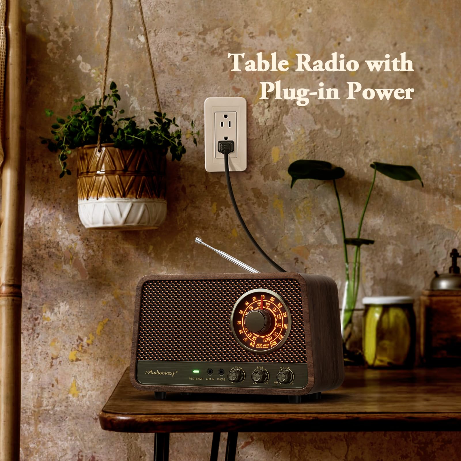 【VINTAGE WALL-PLUG RADIO | EASY TO USE】 Real wood grain presents a vintage vibe, making the vintage radio an indispensable anthropologie home /office decor. The tuning knobs are much more intuitive, even the elderly can easy to figure it out.Just plug it in wall to get 120V AC power supply. An unique gift for seniors and the ones who are into retro look.