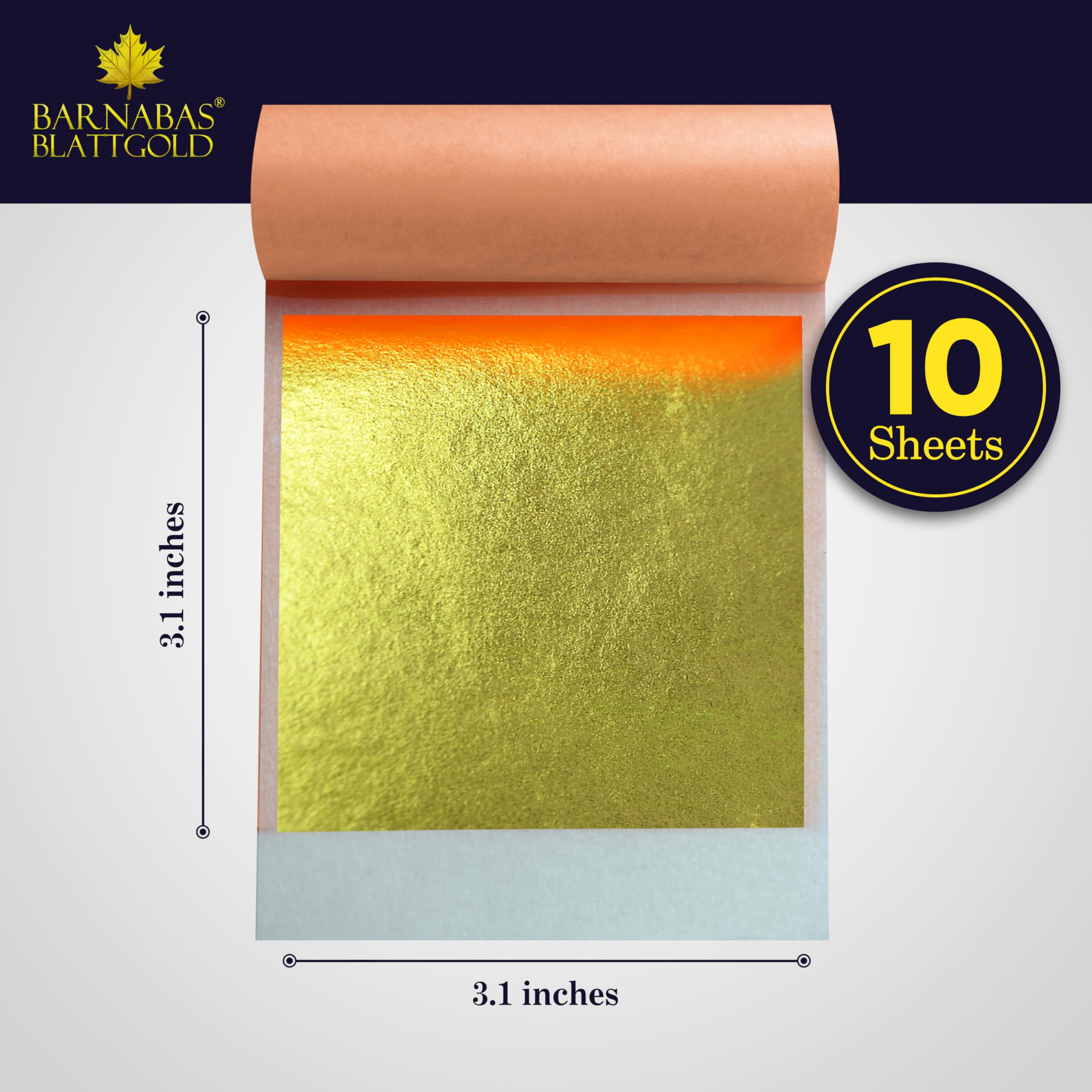 Professional Grade Leaf: 25 Sheets of 24k genuine transfer metal leaf or gold foil sheets for crafts in a pack, measuring 3 1/8 x 3 1/8-inch per sheet. 25 sheets covers approx 1.7 sq of flat area.
