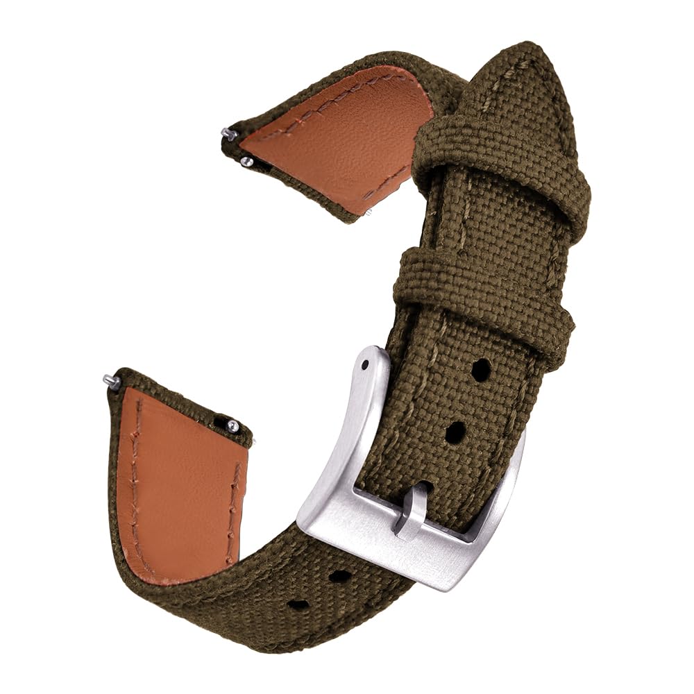Description Immerse yourself in innovation with our cordura fabric watch bands, thoughtfully designed to seamlessly enhance a diverse range of watches and brands, ensuring an impeccable match for your timepiece. Experience the pinnacle of durability with our watch bands for men, meticulously crafted from top-tier fabric to deliver unparalleled resilience. Featuring a premium-grade fabric with exceptional tensile strength, these men's watch bands stand resilient in challenging environments, maintaining their elegance without deformation or cracking for enduring sophistication. Embrace user-friendly convenience with our 22mm watch band, it comes with quick release spring bars. The intuitive design guarantees a seamless experience, while the secure buckle closure on our cordura watch strap assures a snug and comfortable fit on your wrist. Enjoy universal compatibility as our men's watch bands effortlessly cater to both traditional watches and smart watch band models, including Galaxy Samsung watch bands. Elevate your watch-wearing journey by achieving a stylish wrist presence, complementing your overall aesthetic, and enhancing the entire experience by wearing our cool watches for men. Our wristbands offer an ideal fit, accommodating wrist sizes from 6" to 7 3/4'' men's band resist cracks, odors, and hardness even in the most rugged sports or activities, ensuring a perfect combination of comfort, flexibility, and durability. Material Top Quality Cordura fabric Water Resistant Leather Lining Compatibility Fits any 14mm, 16mm, 18mm, 20mm, 22mm watch wrist size 6” to 7 3/4'' Color Black, Olive, Grey, Khakhi, Blue, Red, Orange