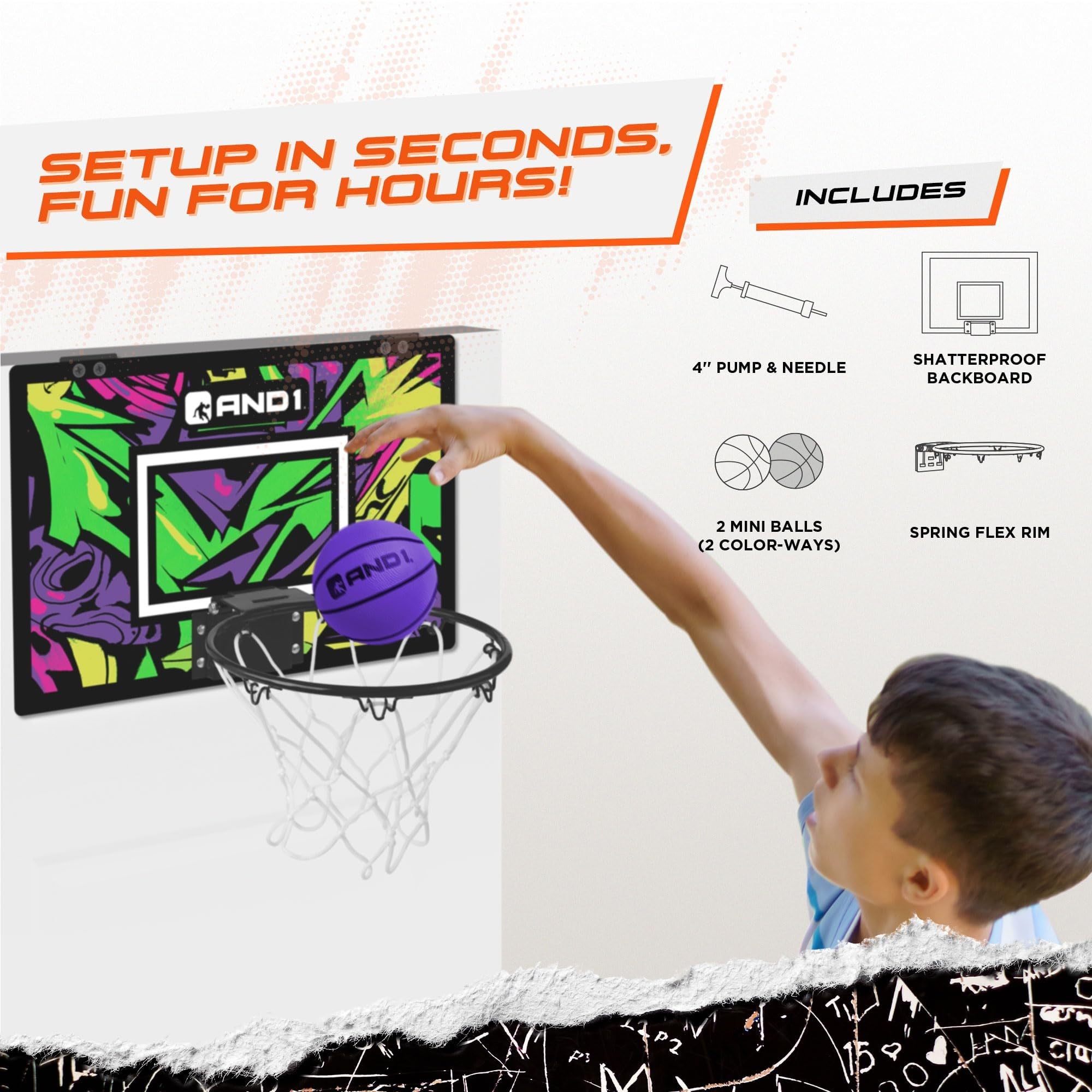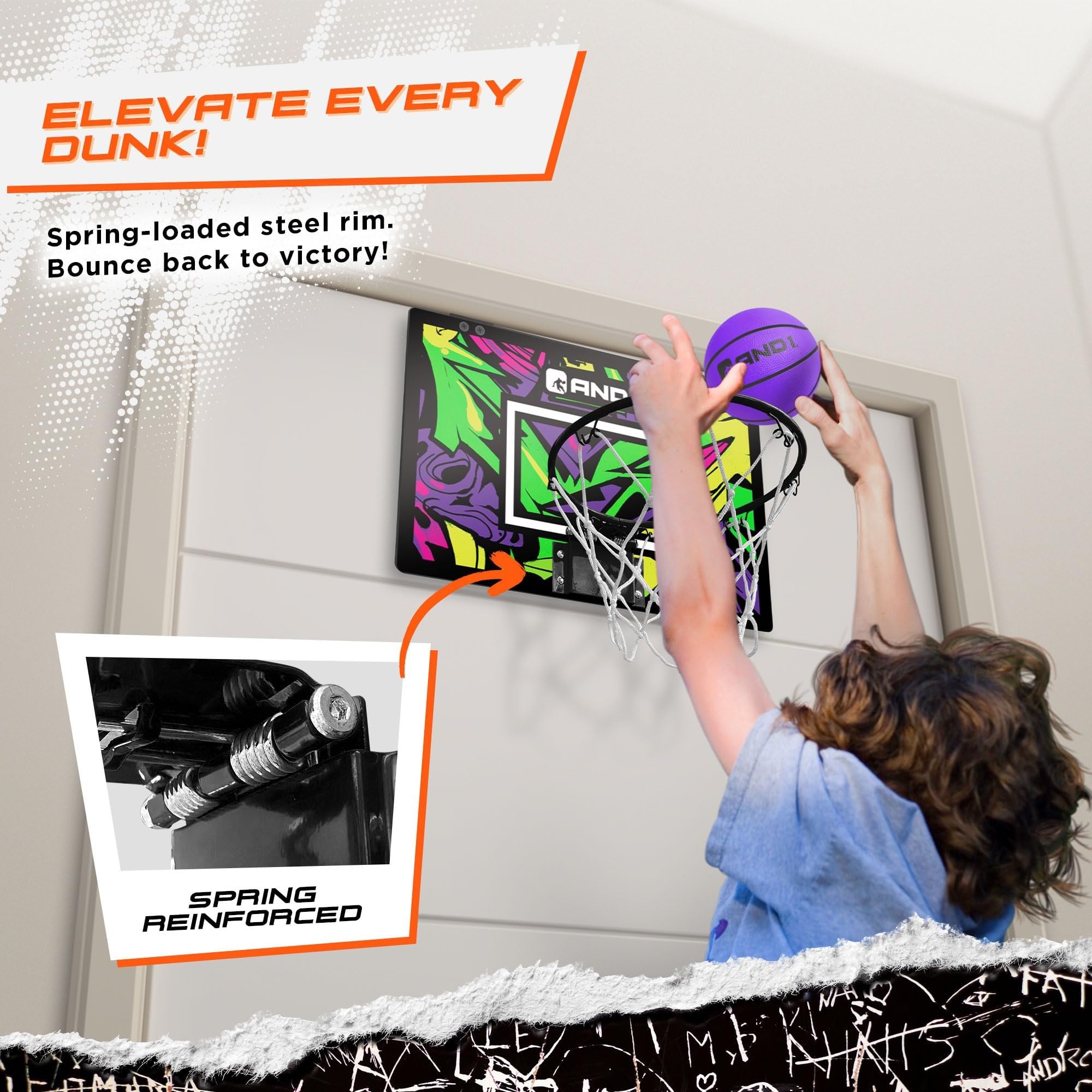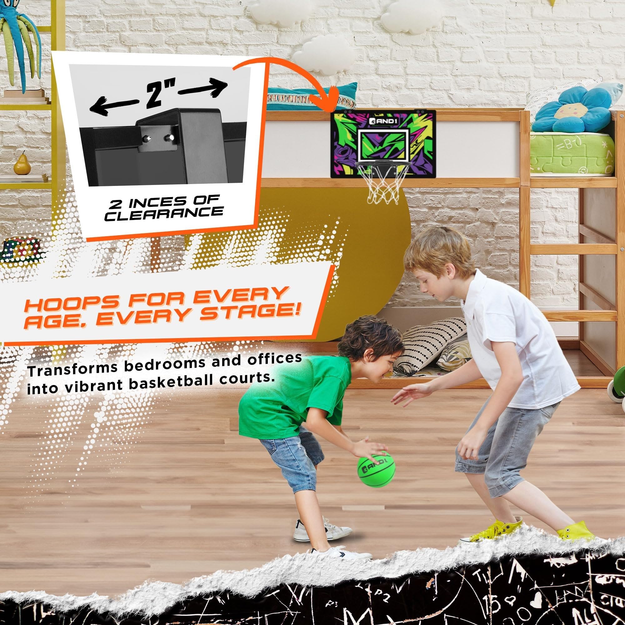 UNLEASH YOUR INNER BALLER ANYWHERE: The AND1 Over the Door Mini Basketball Hoop caters to all ages, from toddlers to adults. It transforms any space into an indoor basketball arena, making it the go-to choice for mini basketball and indoor basketball enthusiasts.