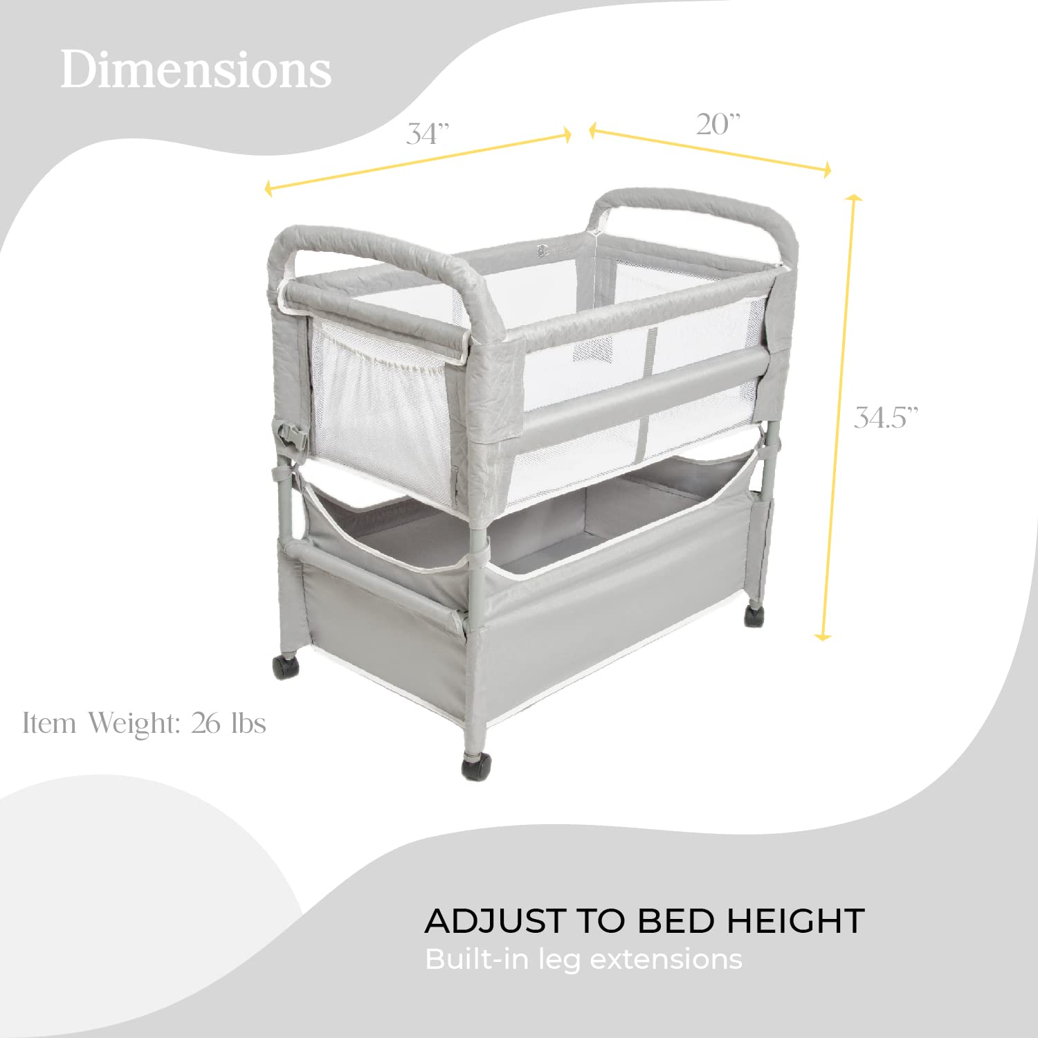 EASY TO ASSEMBLE, the Clear-Vue Co-Sleeper brand bassinet is 34"(L) x 20"(W) x 34.5"(H) and weighs 26 lb