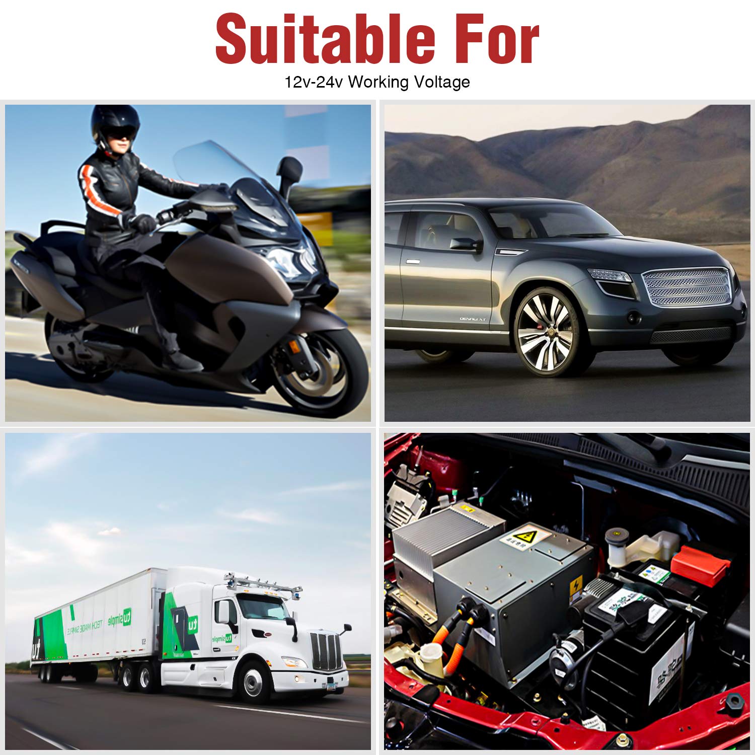 Universal SAE Connectors: Standard terminals, quick connect/disconnect, compatible with most SAE port