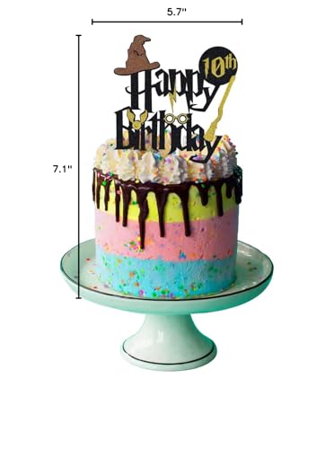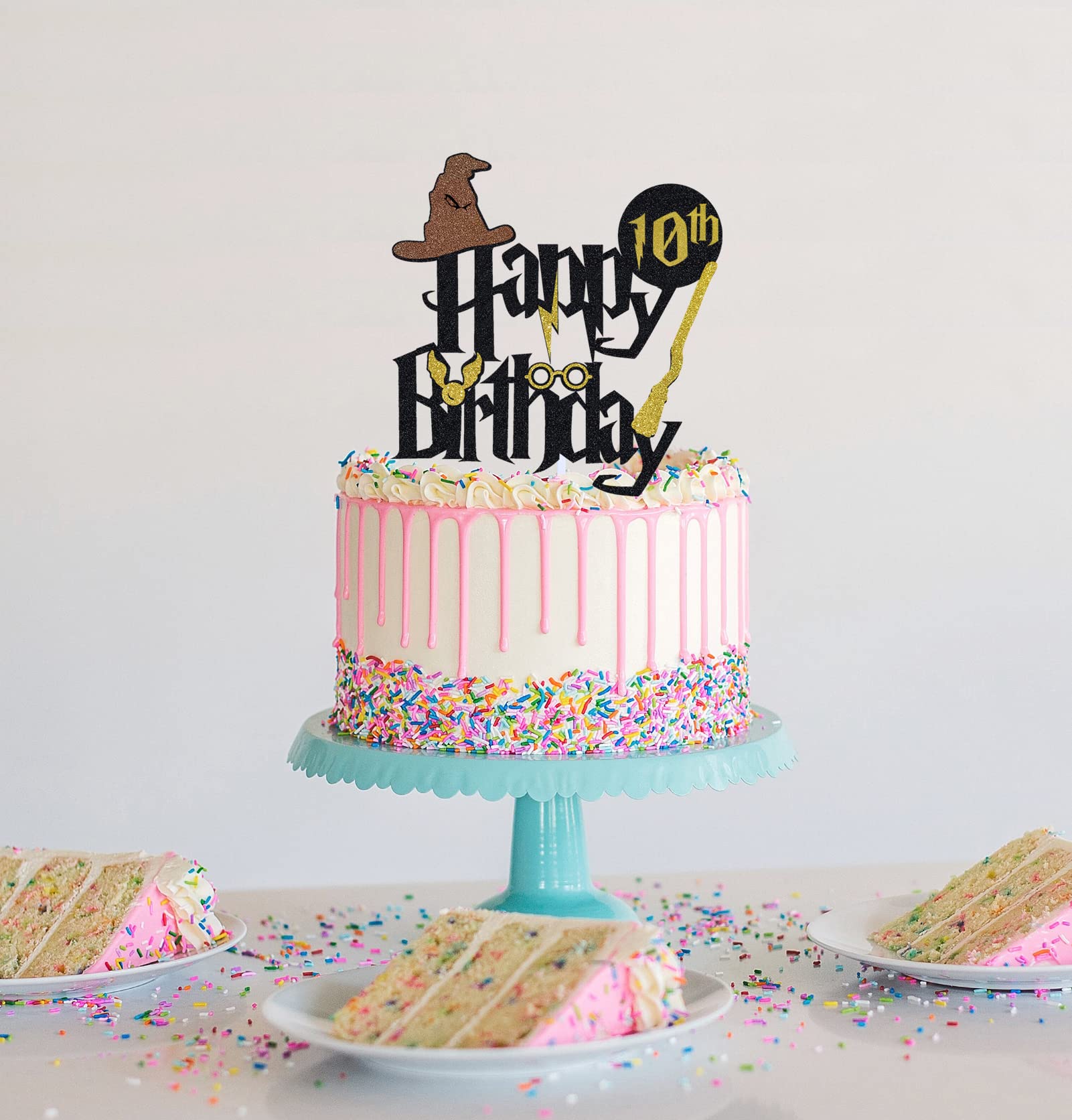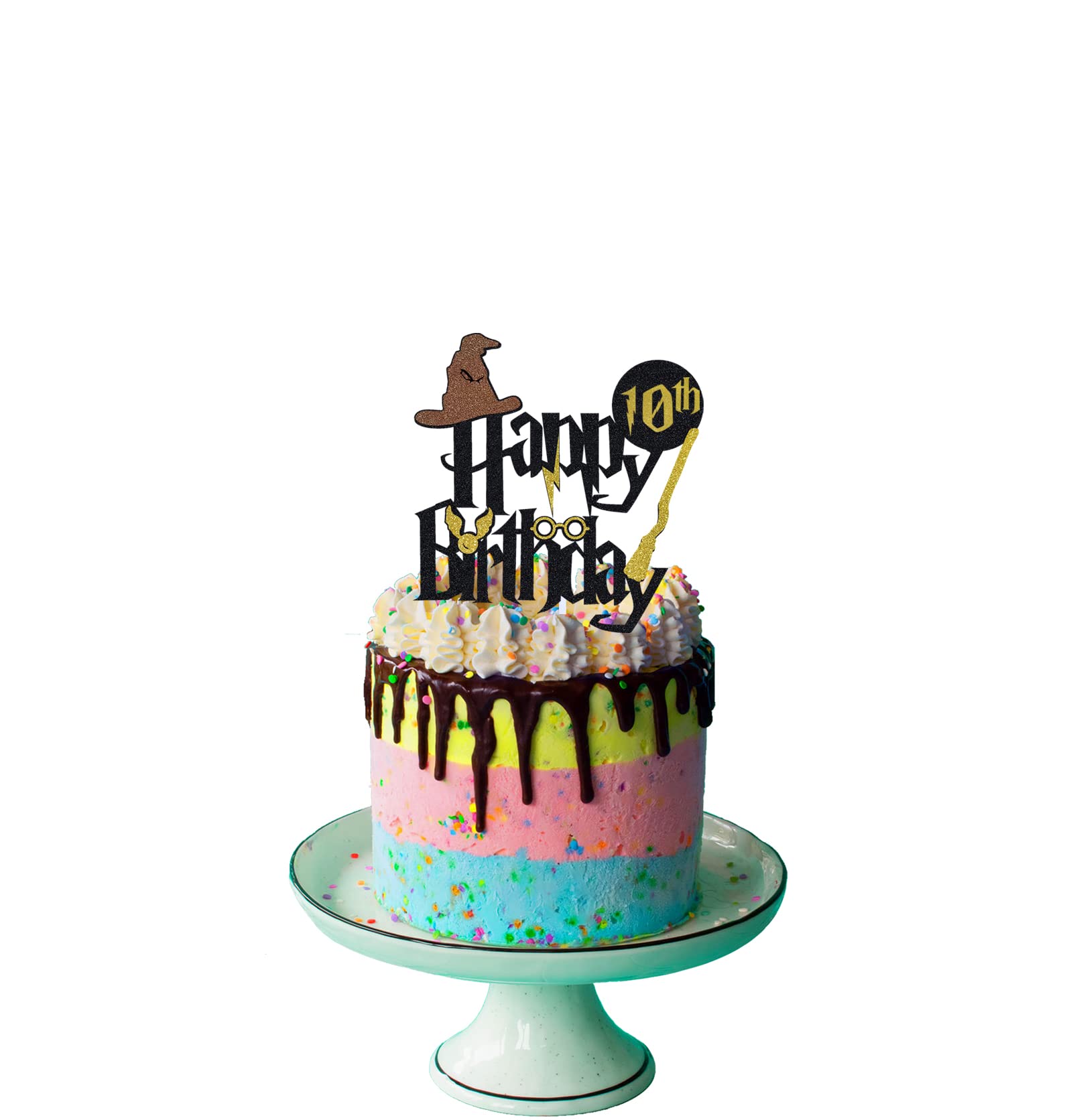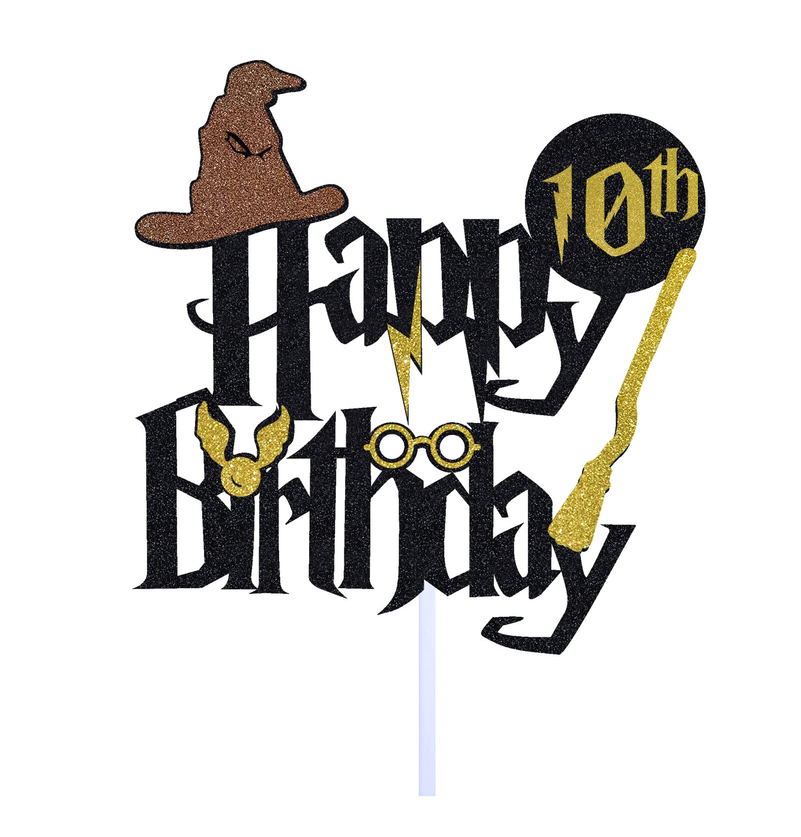 Wizard 10th Cake Topper , Boy and Girl 10 Happy Birthday Party Decoration - Black Glitter Paper