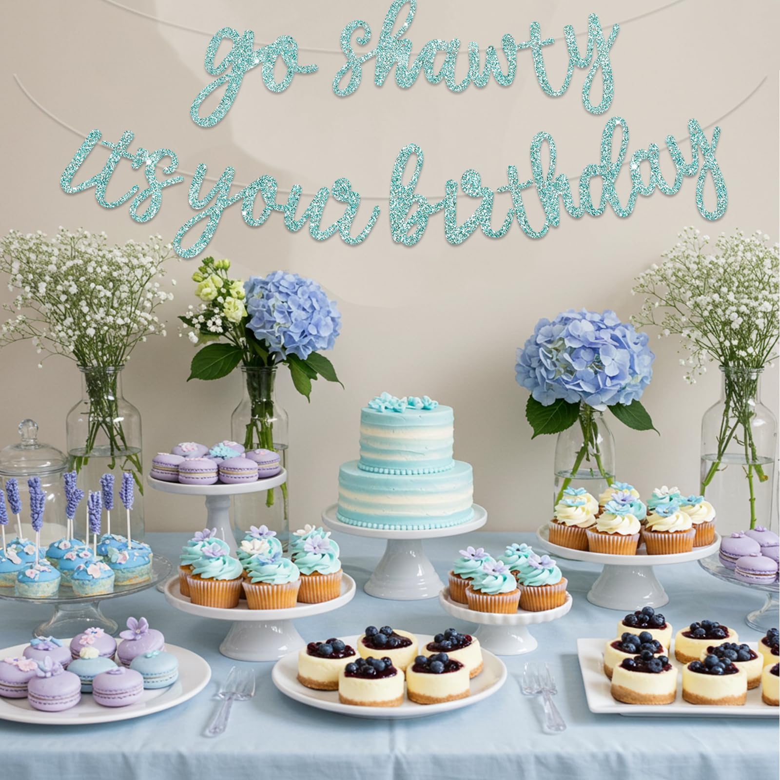 Product includes : A Glitter NO DIY Go Shawty It's Your Birthday Banner is included in our product. It is a very convenient birthday banner that can save your time and decorate your birthday party very well.