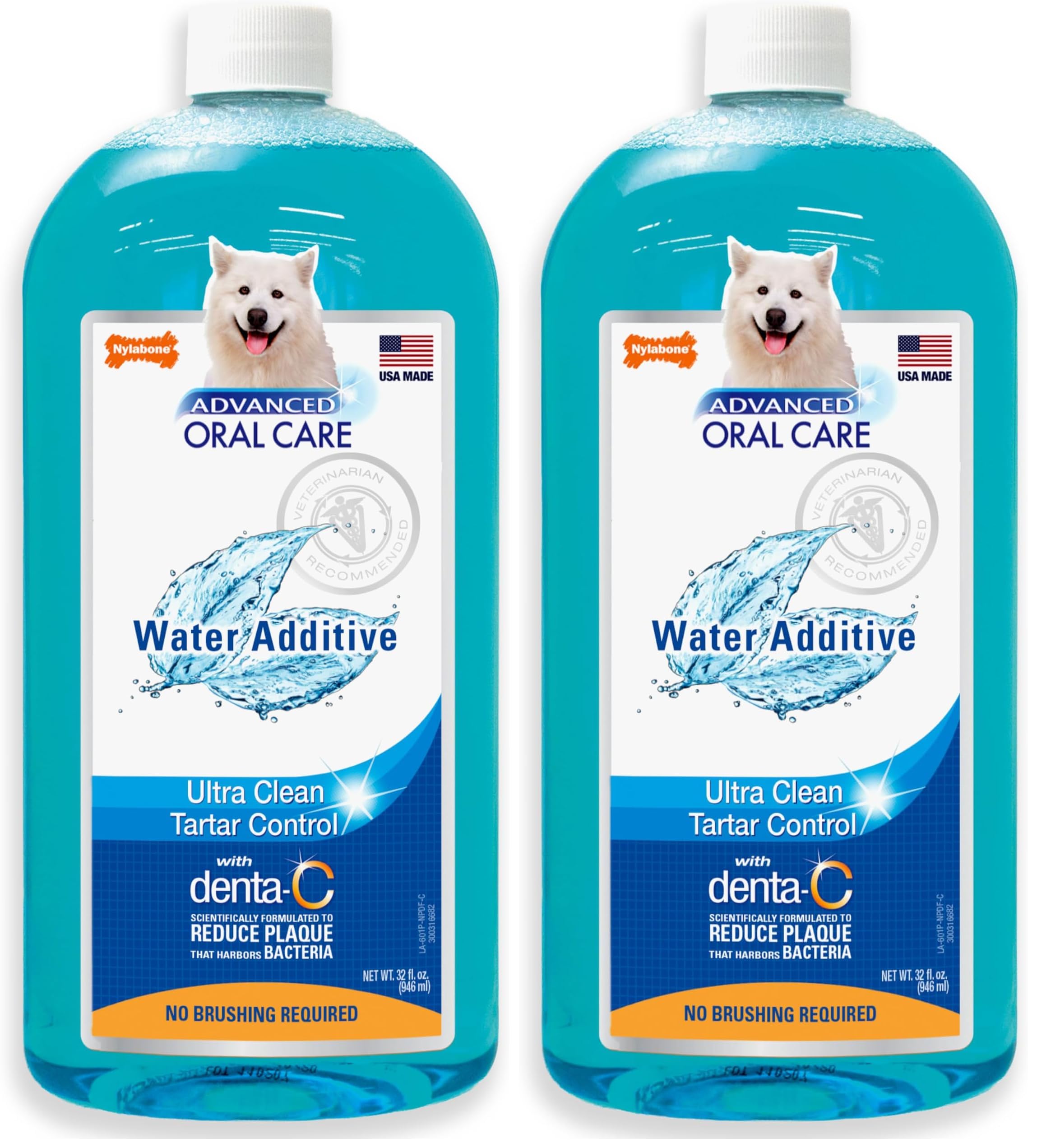 ABOUT ADVANCED ORAL CARE Did you know dog dental care is a key aspect of your furry friend’s overall wellness? That’s why Advanced Oral Care pet supplies are specially designed to make at-home dental care simple. From dog-friendly toothbrushes to breath-freshening liquids, there’s a solution to make your best friend’s oral care routine stress-free! 1 TABLESPOON IS ALL IT TAKES Cleaning your dog's teeth is as easy as taking a drink! Just add a single tablespoon of Advanced Oral Care Water Additive to your furry friend’s water bowl to help them enjoy fresher breath and cleaner teeth. This dog bad breath eliminator contains Denta-C, which is scientifically formulated to help reduce plaque by altering the pH of your dog’s saliva. Proudly made in the USA, our veterinarian-recommended dog dental solution is a simple and effective complement to regular brushing. GUARANTEED YOUR DOG WILL LOVE IT Before we introduce new dog products to furry friends and pet parents everywhere, we make sure our very own dogs love them first! If you’re not happy with your Nylabone chew treat for any reason, simply return it to us with the sales receipt for your money back. Or, reach out to our Consumer Care team so we can help make it right (and talk about how much we also love our dogs). MEET NYLABONE Ever since introducing our very first chew toy in 1955, Nylabone has been helping pet parents take the best possible care of their furry friends. Fast-forward 60+ years and our family-founded company is still trusted for tasty treats, high-quality chew toys, fun play toys, and easy-to-use dental products!