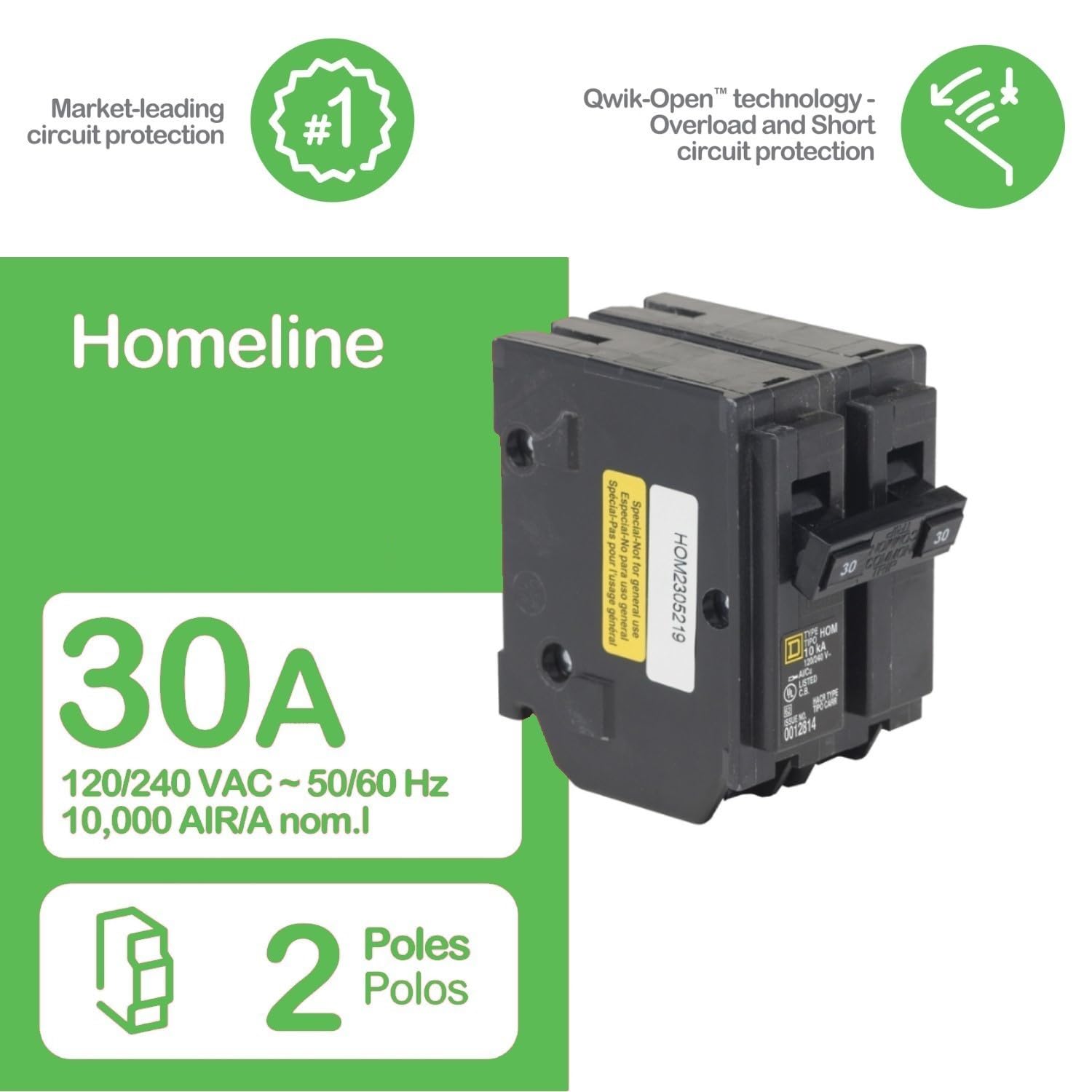 Square D HomeLine 30 amps Surge 2-Pole Circuit Breaker
