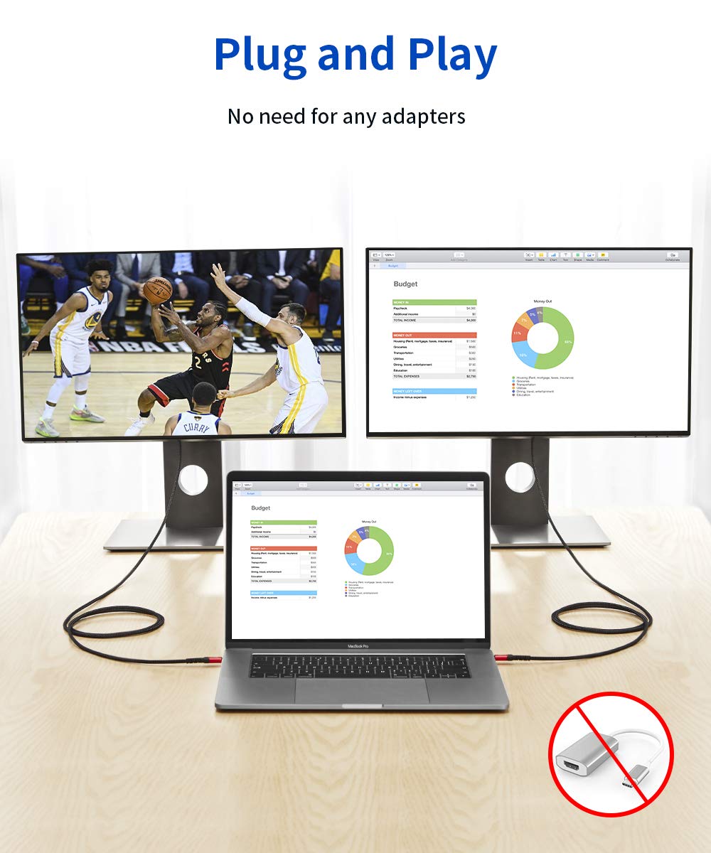 【Plug and Play】: Plug and Play,Easily expanse or transfer your screen to other monitors/TVs with a single cable. No adapters or driver required.(Note: this usb c to hdmi cable does not work for the phones of pixel)