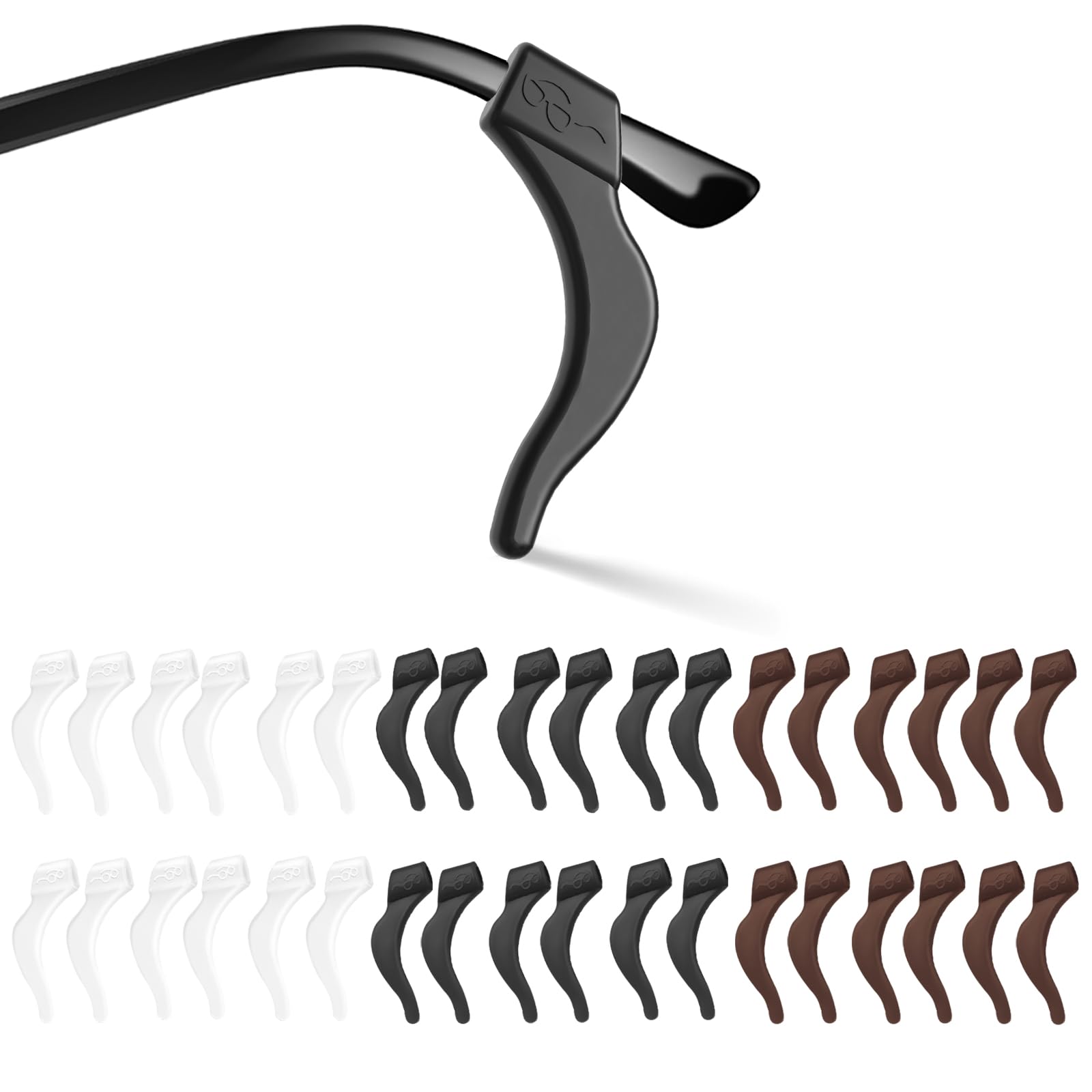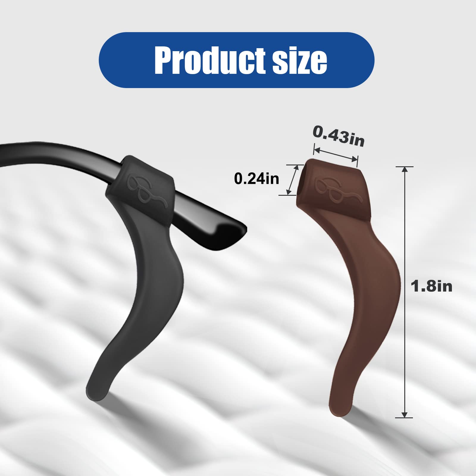 Size and Quantity: 4.2 * 1.1 * 0.25cm, you will get :6 pairs Black ,6 pairs Clear, 6 pairs Brown silicone ear grips of glasses.total 18 pairs eyeglass ear hook grips of glasses
