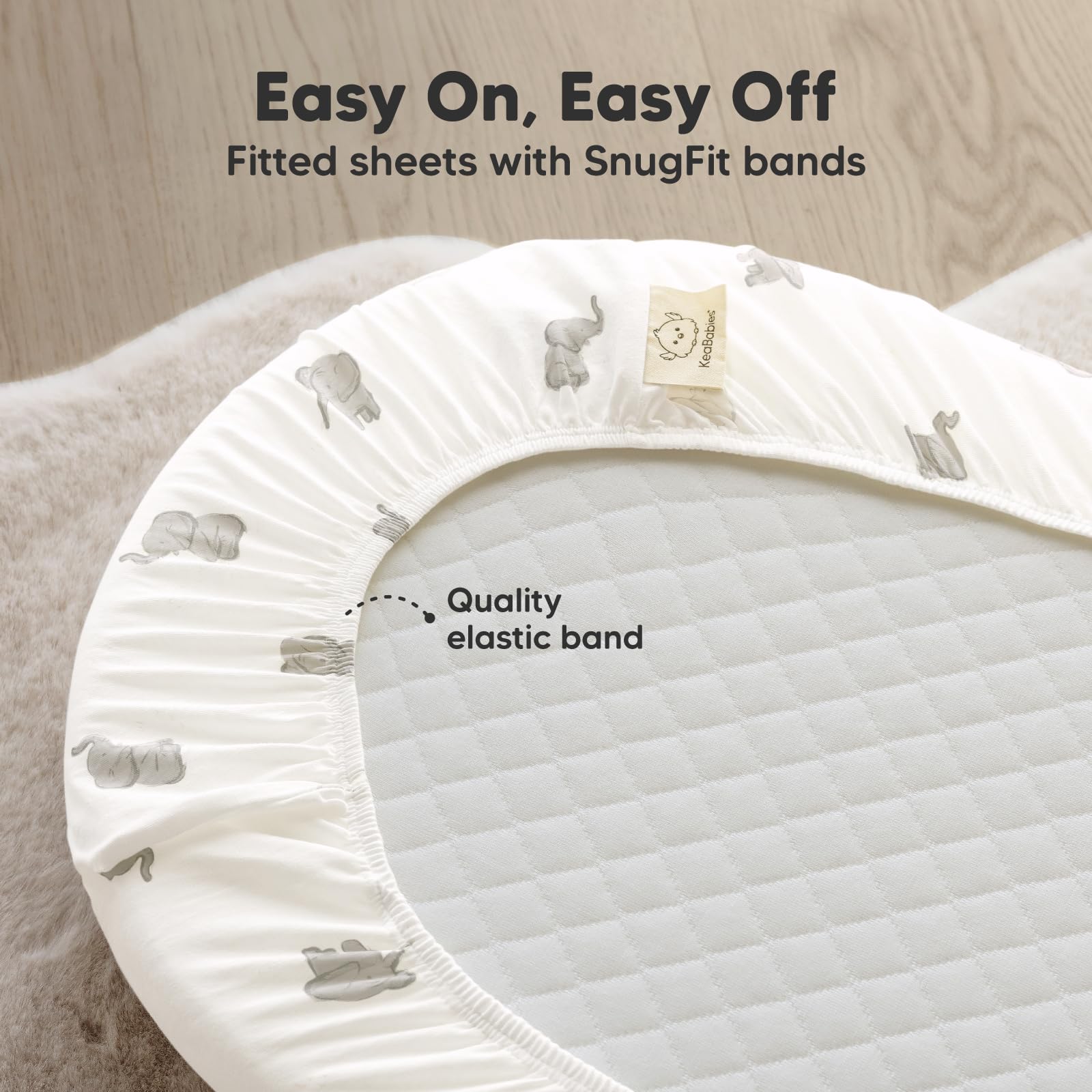 High-Quality Elastic Band - When crafting our KeaBabies Cotton Bassinet Sheets, we use a premium elastic band hidden within the seams and intricately stitched. This helps secure the baby bassinet mattress sheets in place for safe sleeping.