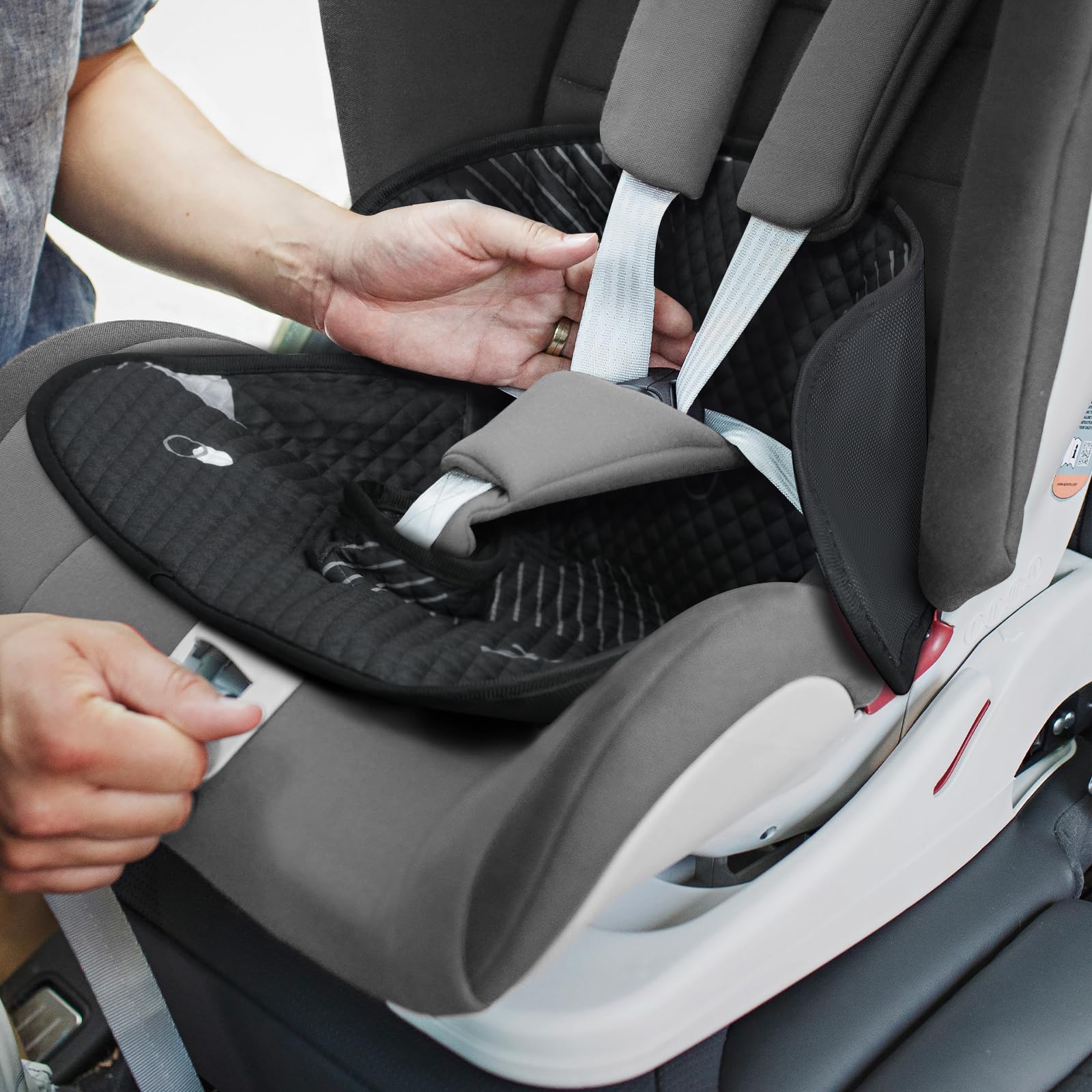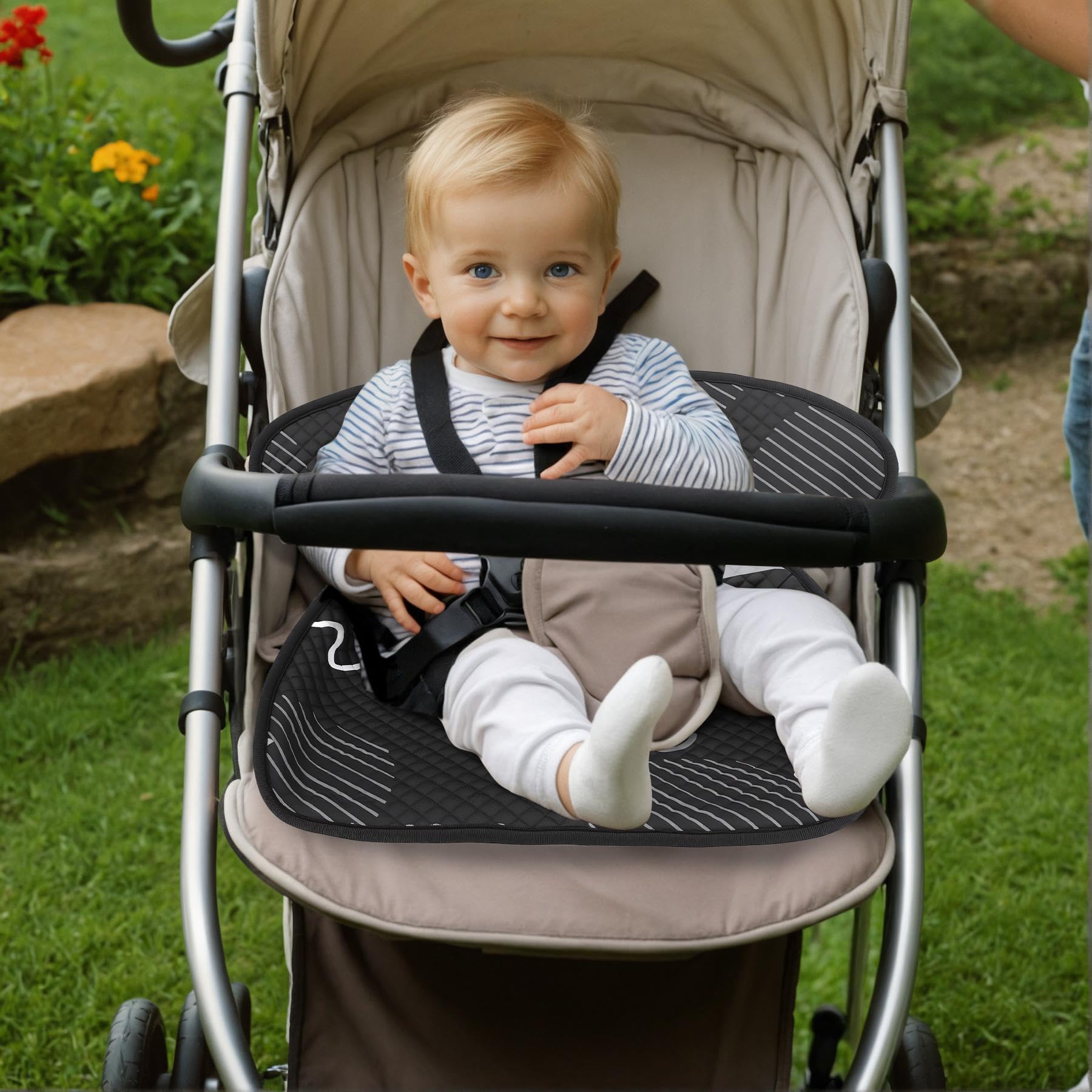 【Fit and Anti-skid】:The cozy seat cover pad works with all harness systems, contoured liner design fits easily and discreetly inside child's seat without reducing harness safety. The anti-backing of our seat liner prevents it from sliding around