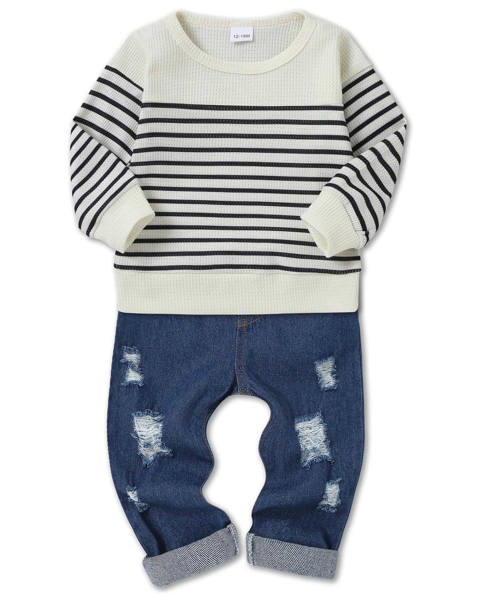 Practical Denim Pants: The included jeans come with a stretchy elastic waistband for easy dressing and two front pockets for carrying small treasures. These pants are a staple in any boy fall outfit, offering both comfort and utility