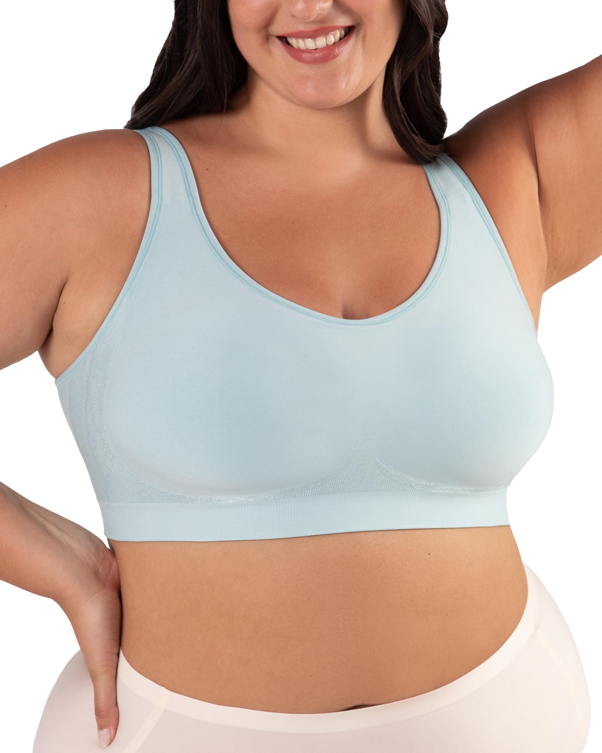 LIGHTLY PADDED SEAMLESS DESIGN: This seamless bras for women favorite includes foam cups for firm, wire-free support and non-see-through fabric. Breathable and smooth, it stays invisible under tight shirts for a flawless, second-skin feel.