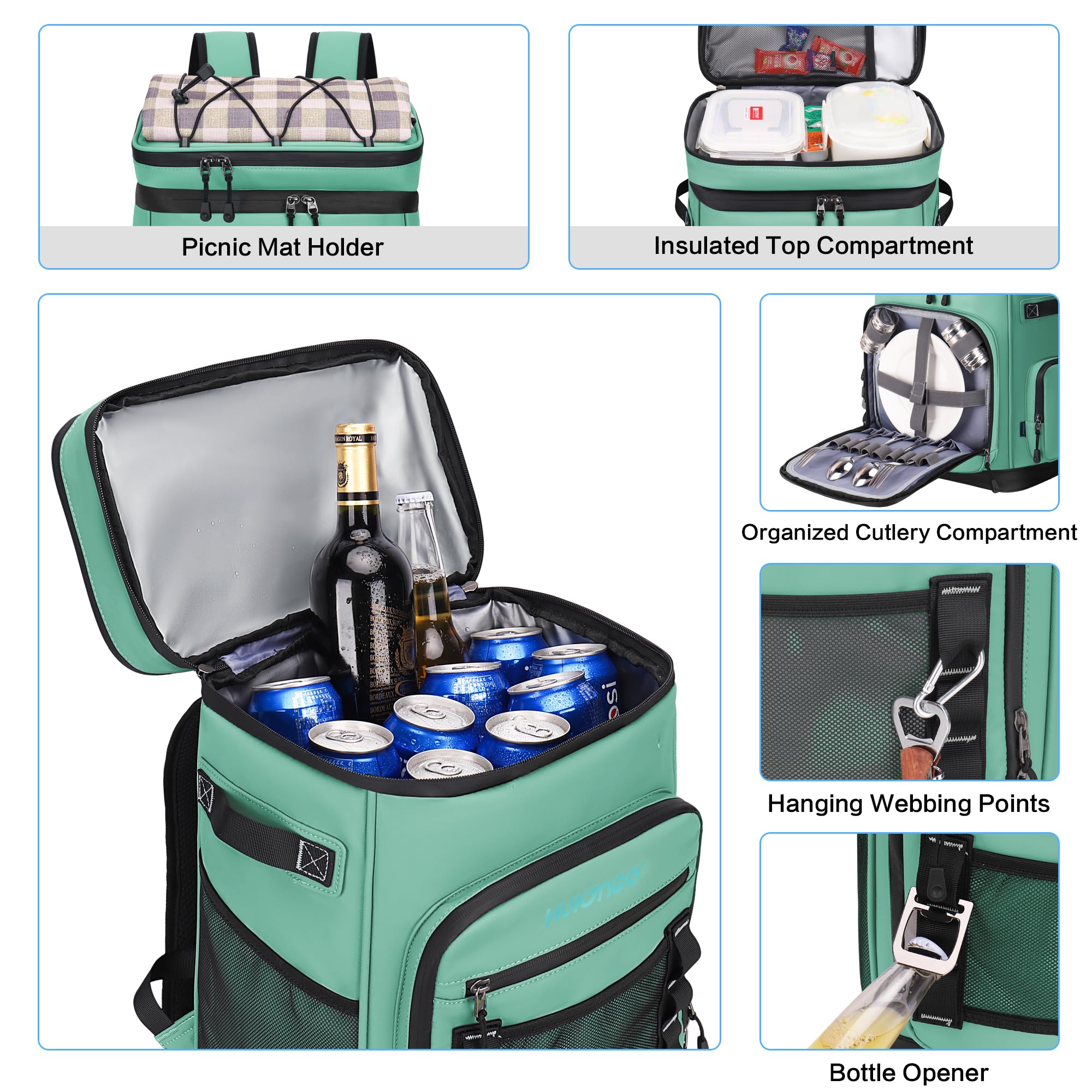 5.Capacity: The backpack measures 17.7" x 12.2" x 7.9" and can hold up to 35 cans of 330ml, providing generous space for meals, drinks, snacks, and more.