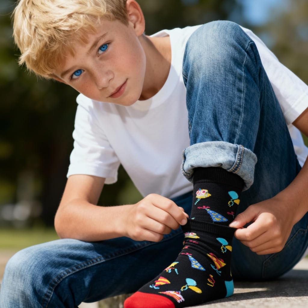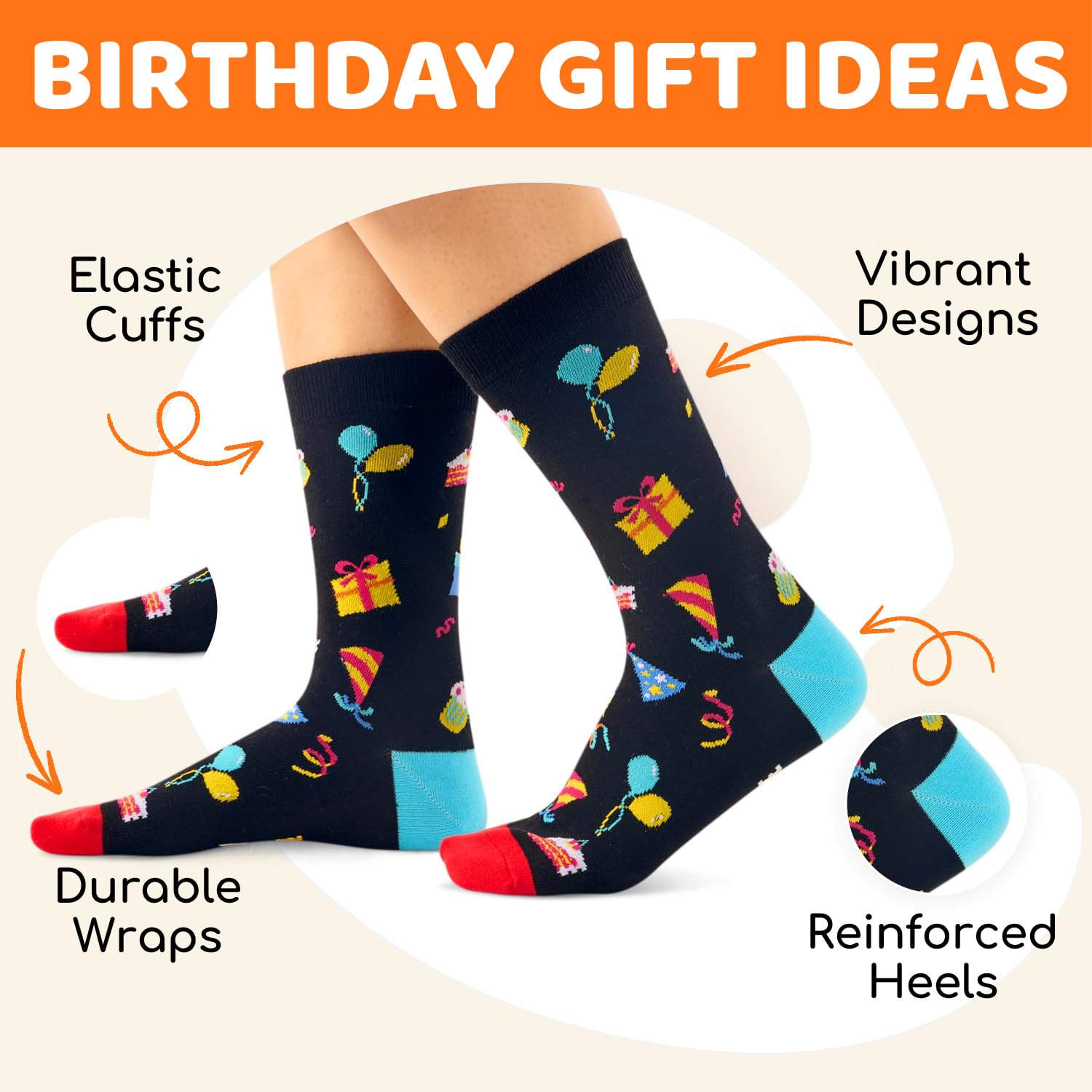 SIZE & PACKAGE: These fun and crazy socks are designed to fit most teen boys' US sizes 6-13 and most teen girls' US size 7 and up. Each pair comes in a special birthday gift box, ready for giving.