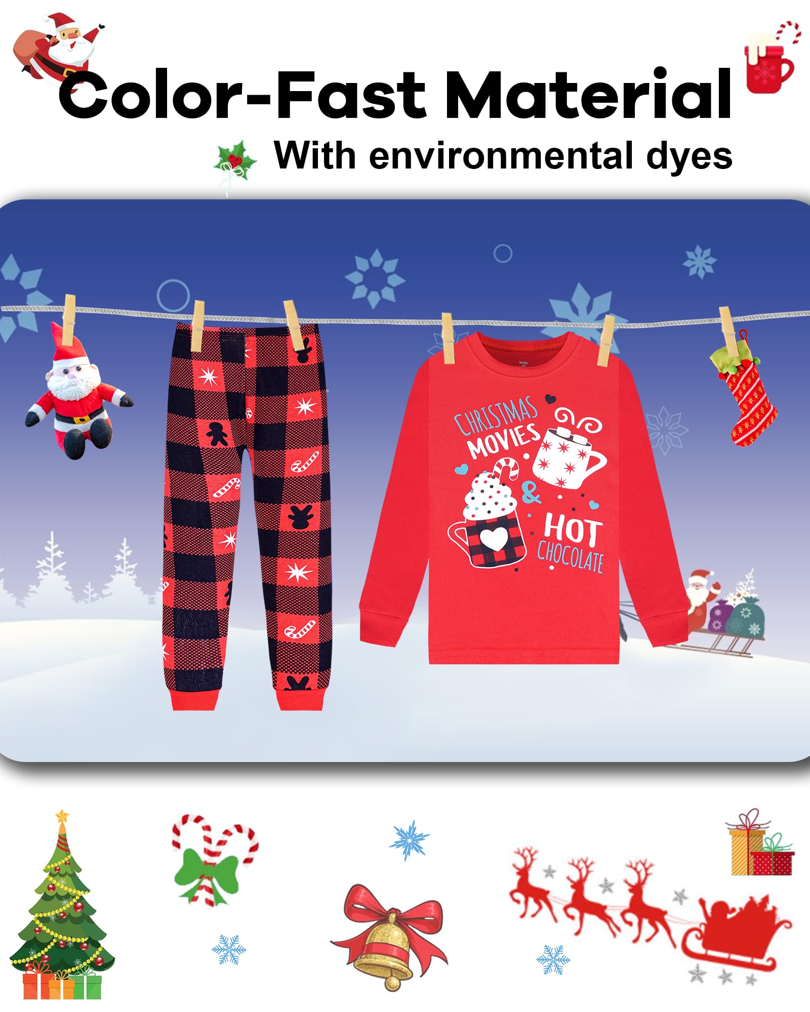 100% Cotton: The girl's christmas pajamas sets with 2pc are 100% cotton, which is very soft, lightweight, breathable but warm. The natural cotton long sleeve pjs for girls ensure a comfortable night's sleep, are also good for children's skin. We have been dedicating to providing kids with super comfy holiday pajamas