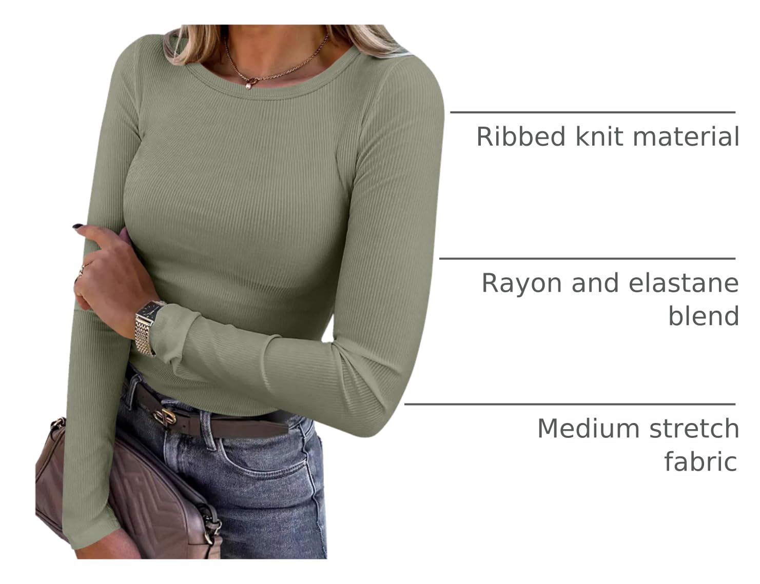 Features - Our long sleeve crew neck design is versatile and suitable for many occasions - wear it to school, the gym, the beach or just for everyday casual wear. The slim fit highlights your perfect figure, making you look confident and stylish wherever you go. Our tops are slim, comfortable, lightweight and very flattering, making them a must-have in your wardrobe.