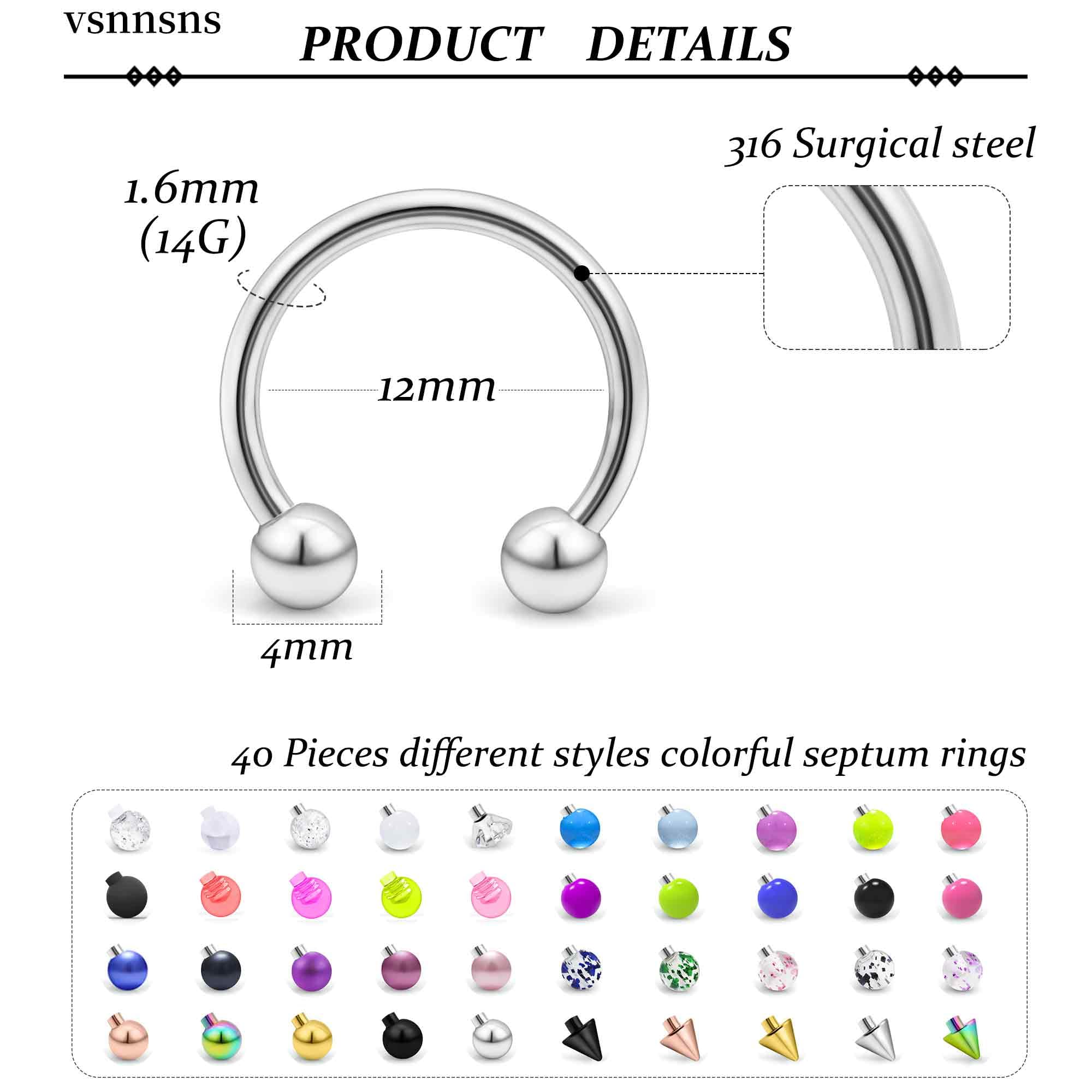 [ITEM CONTAIN]: You Will Receive 40 Pieces Different Designs Horseshoe Septum Rings Piercing Jewelry, All Of Them Are Beautiful And Elegant, Multiple Choices For Meeting Your Various Needs.