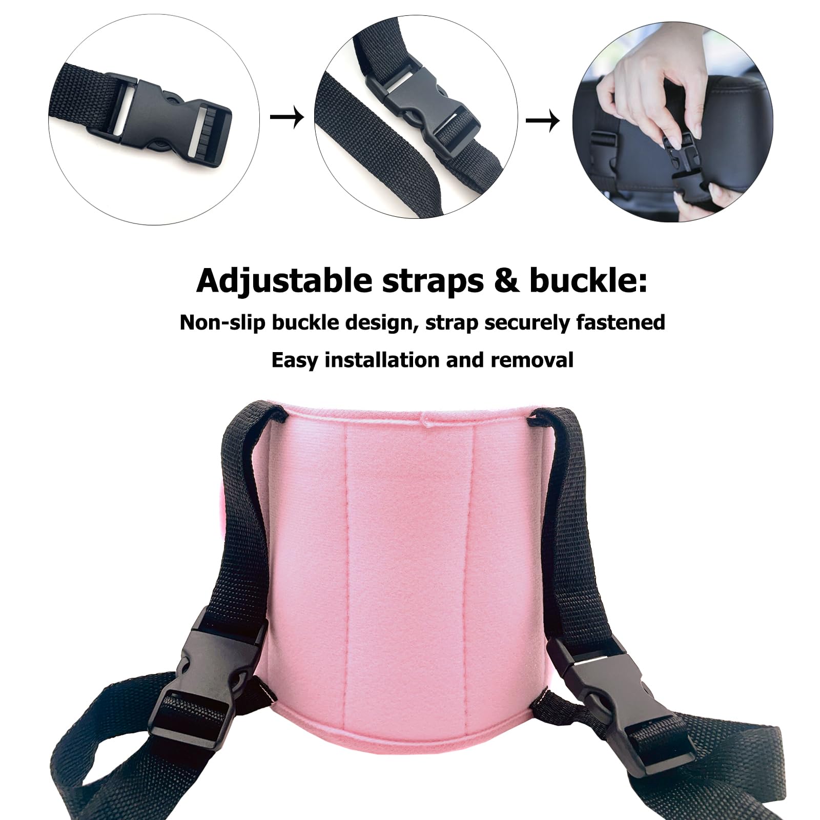 Multifunctions: kids car seat head strap fits for child car seat; The long webbing plus with adjustable buckle can be fixed on child car seats, easy to install