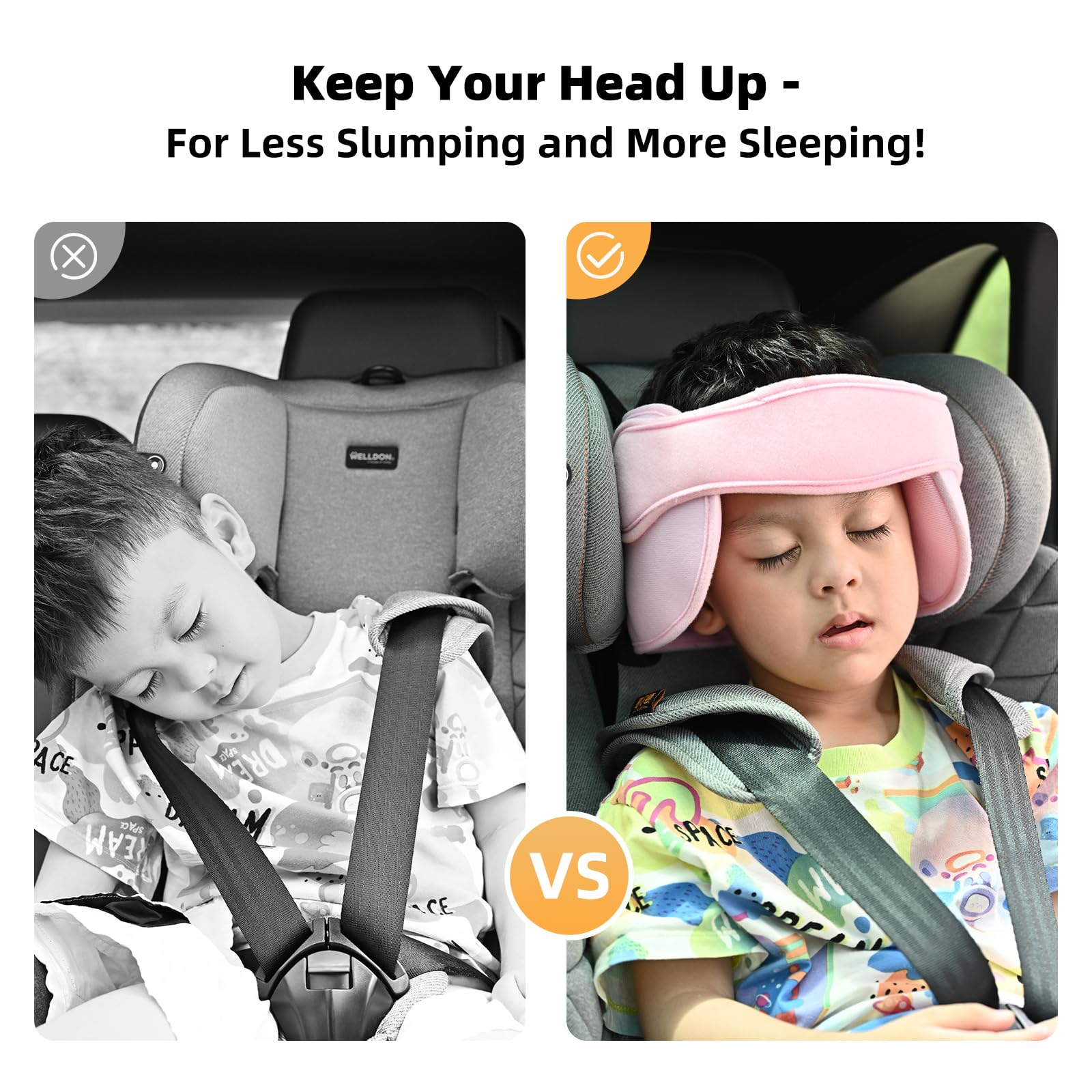 Better Choice for Kids: Sleeping in car seats makes kids uncomfortable; Protecting your sleepy child with LETTON Toddler Car Seat Head Support Band, relieving neck strain and preventing baby's head from falling down