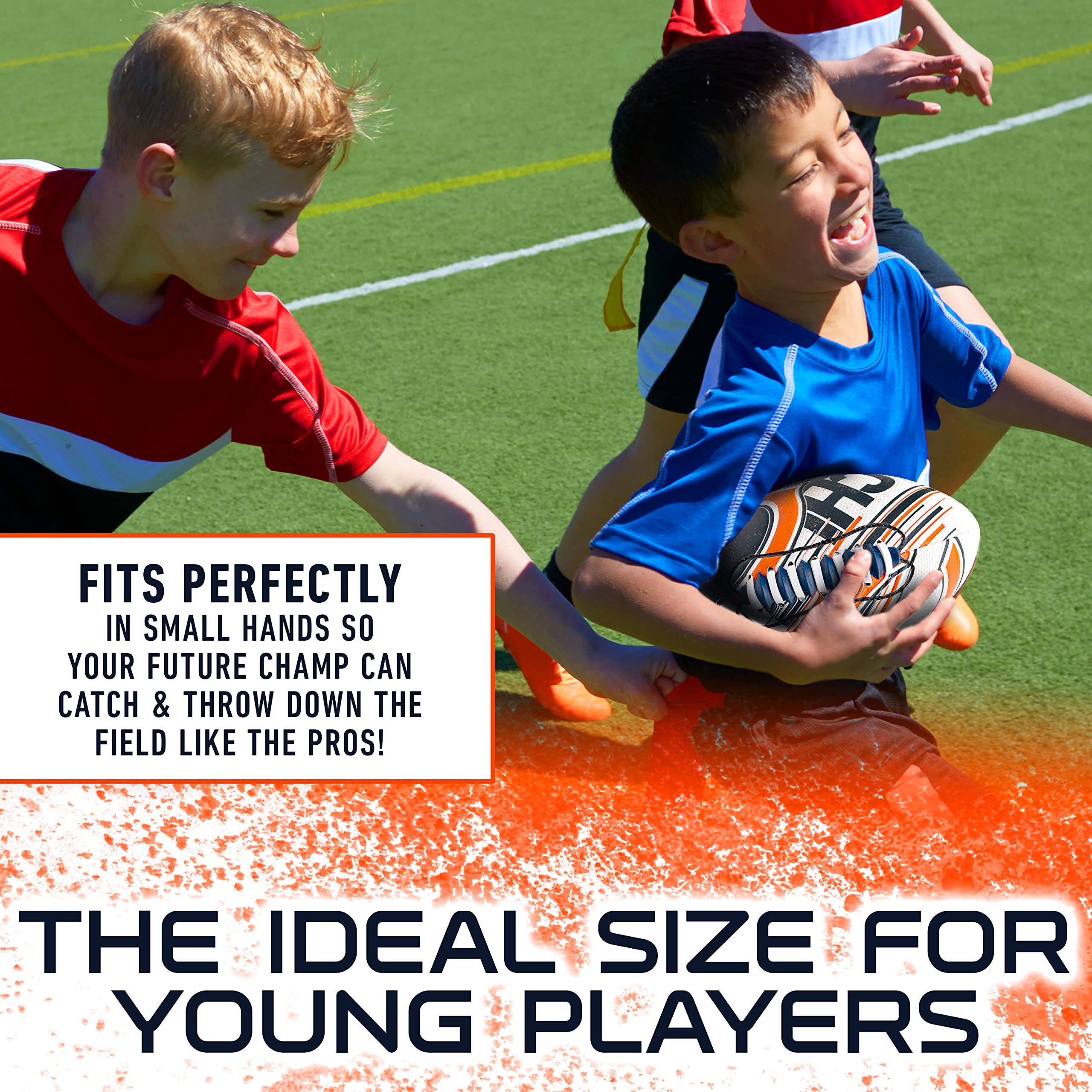 PERFECT SIZE: This 8.5" mini football is the ideal size to fit in a young players hands so your future champ can catch and throw down field like the Pros!