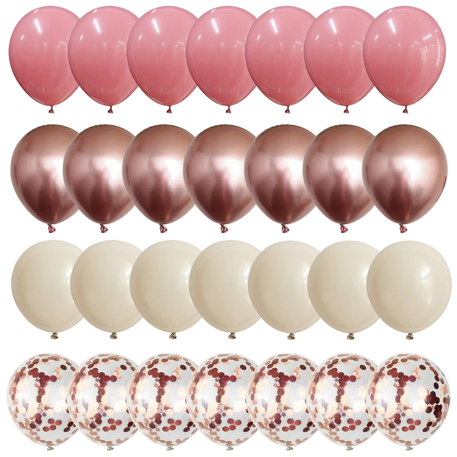 🎉 Dusty Pink Rose Gold Beige Balloons - You will get 35 pieces 12 inch latex party balloons set, includes pearl blush pink 10pcs, creme / beige / white sand 10pcs, metallic rose gold 10pcs, rose gold confetti 5pcs, come with 1pc rose gold balloon ribbon. Perfect for girls women birthday baby bridal shower wedding party decorations supplies.
