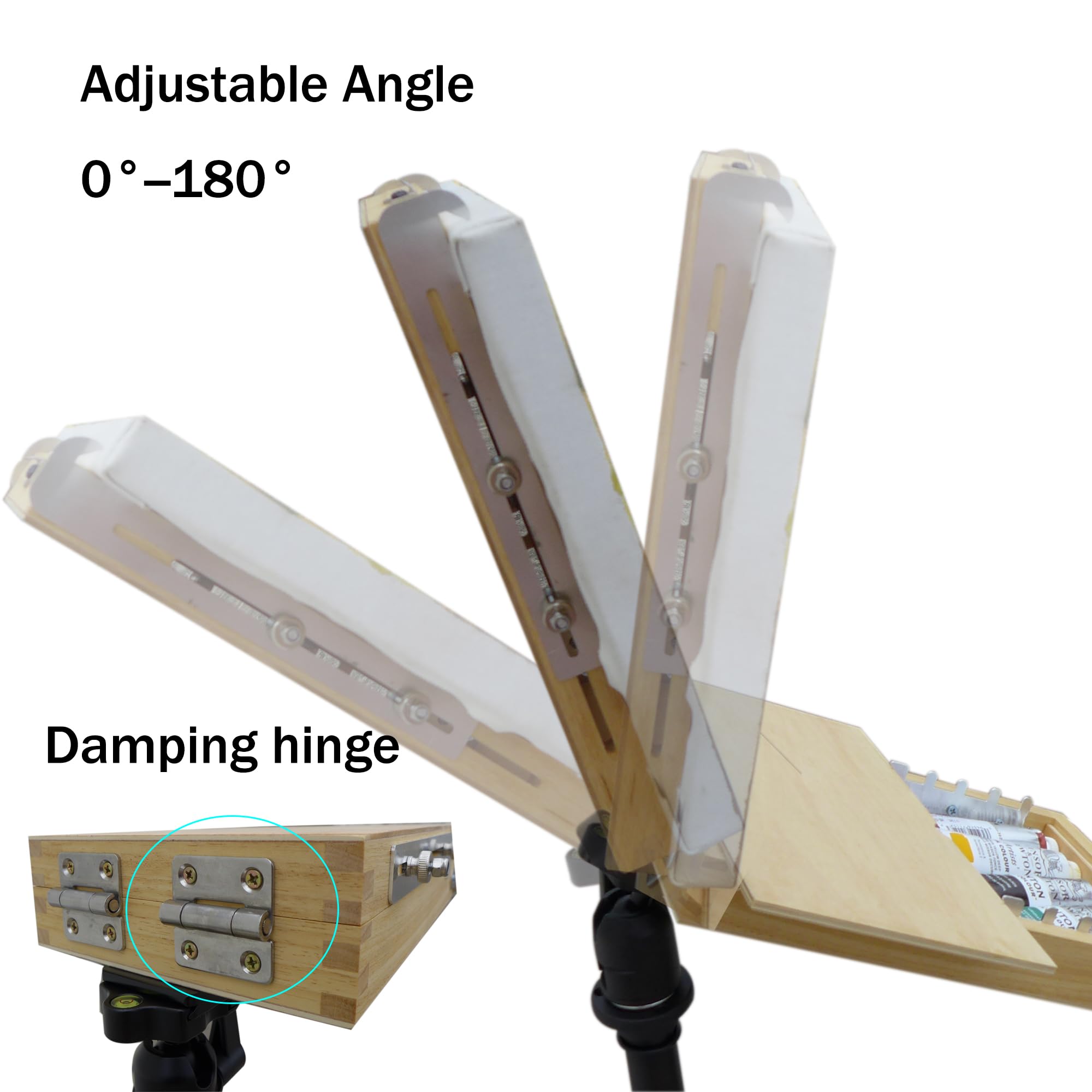 Multifunctional- Discover the versatility of this French easel, you will amazed by its functionality! A special part designed specifically for holding brushes and palette. Inside the painting box is a customized storage area, the box can hold 8tubes(45ml) ,pens or other painting tools.