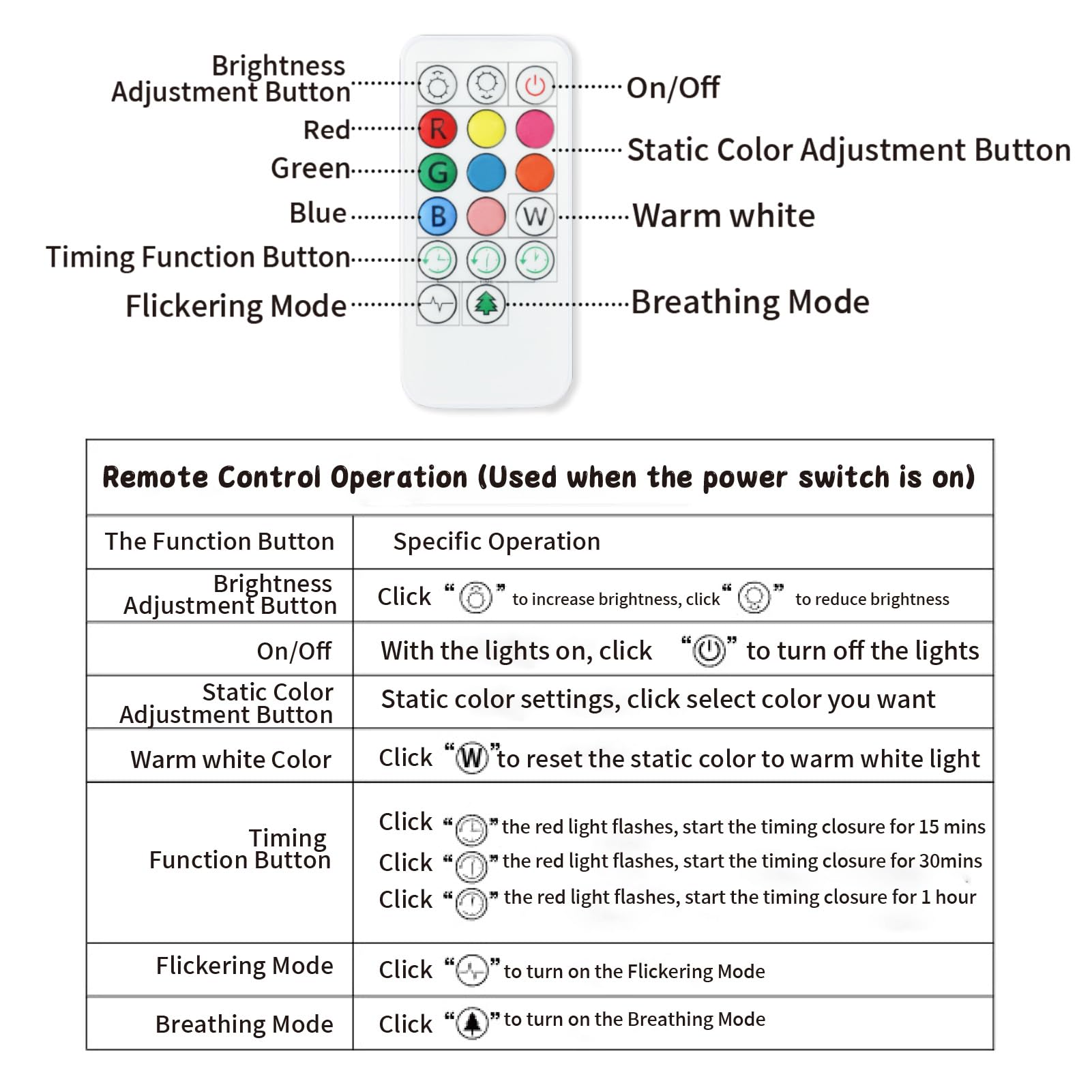 【1/3 Hour Timing and individual button】 This lamp has 1 hour and 3 hours timer function respectively, to help mothers adjust the energy-saving mode according to the child's sleep time, in addition to the warm light and colorful have 2 different buttons, do not need to worry about wake up sleeping children