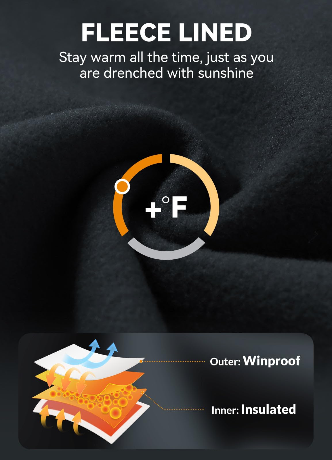 Warm & Water Resistant:Soft fleece inner layer traps heat to keep you warm & comfortable, perfect for cold days under 40°F. Water resistant fabric can handle light rain for a short time or keep dry in snow days and provide wind protection.